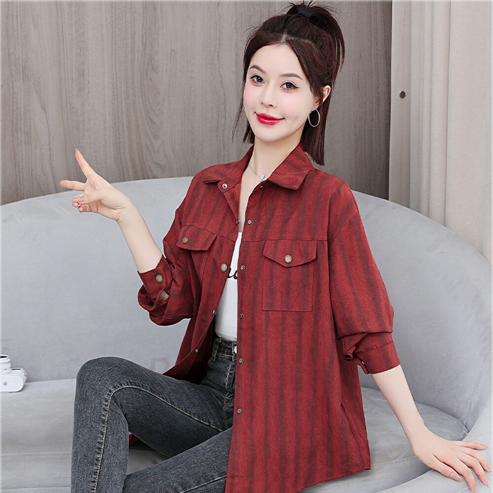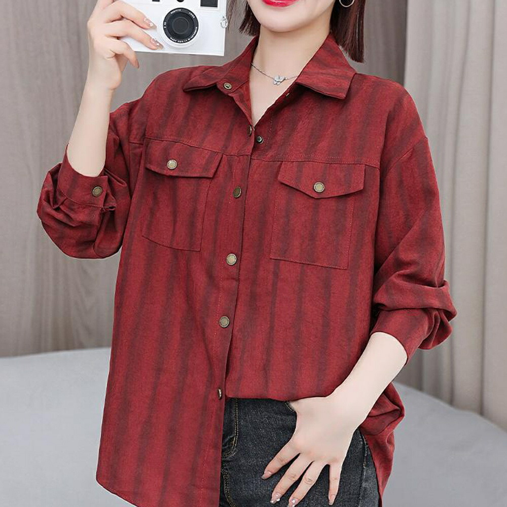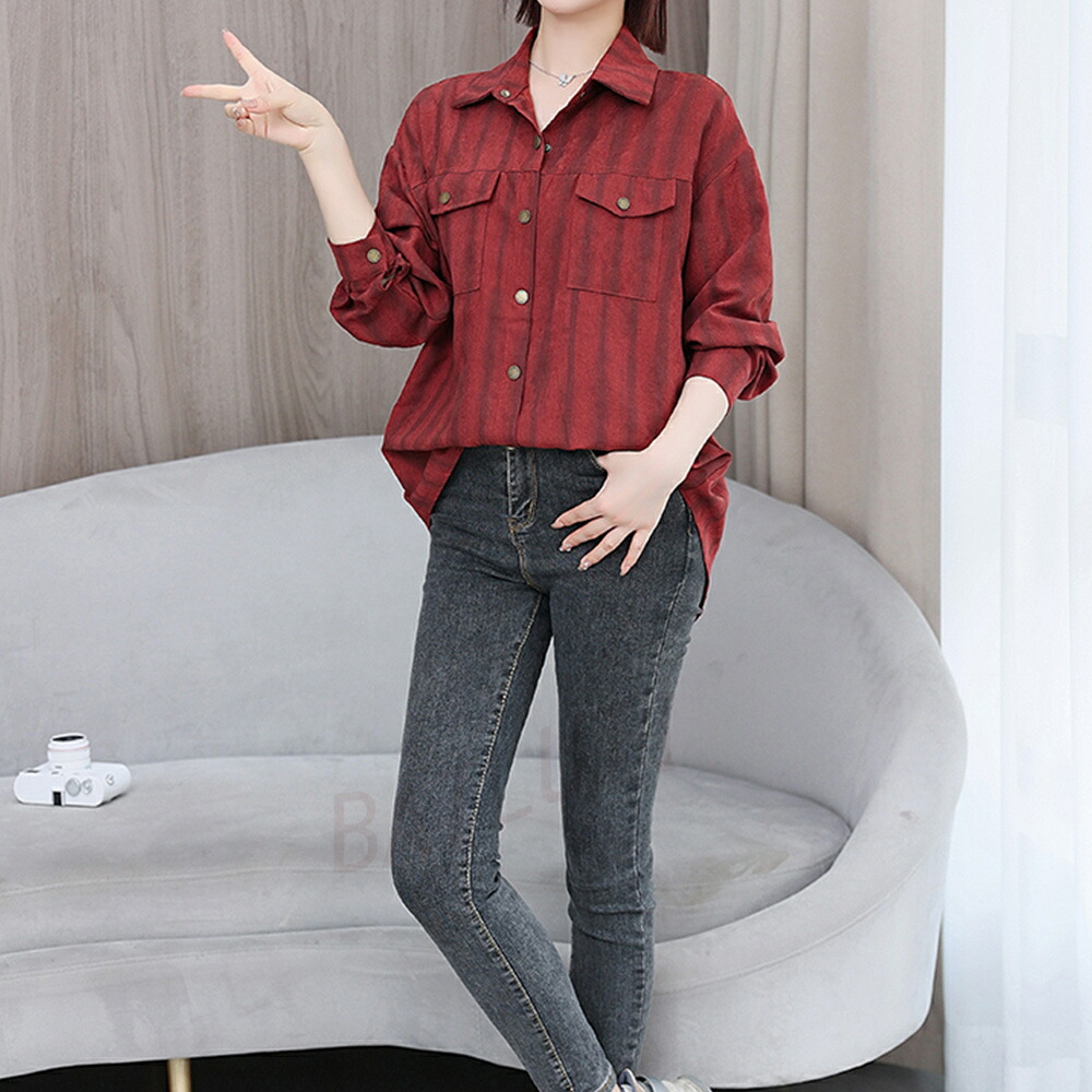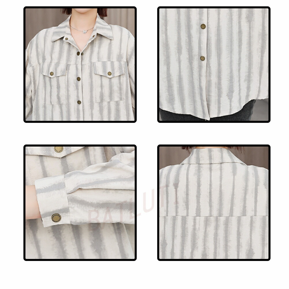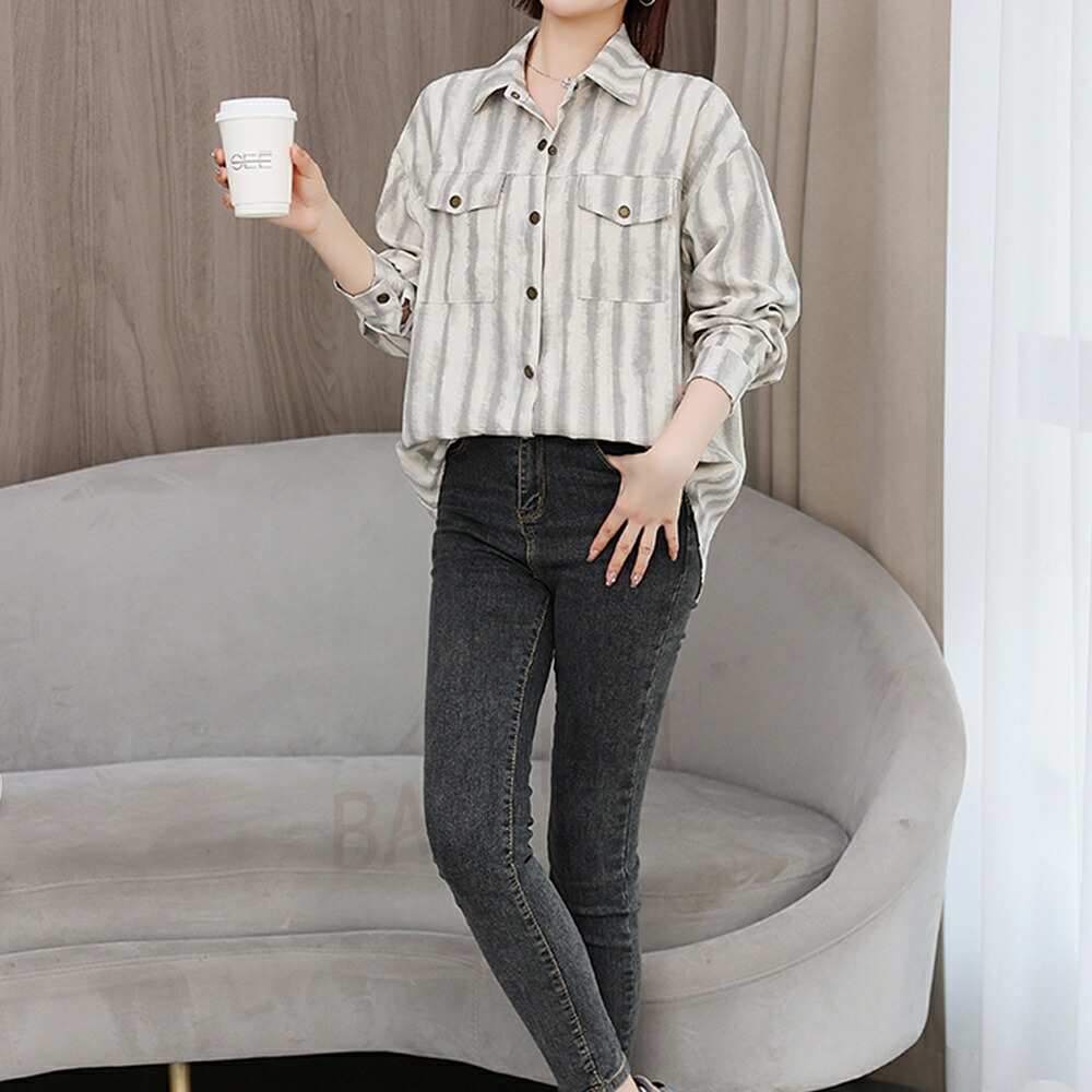 商品名 ブラウス レディース ストライプ柄 シャツ シンプル トップス シャツブラウス ゆったり さわやか ロング丈 おしゃれ 大人 上品 オフィス カジュアル 春 秋 韓国 痩せる効果 お出かけ上品 韓国ファッション 20代 30代 40代 50代 送料無料