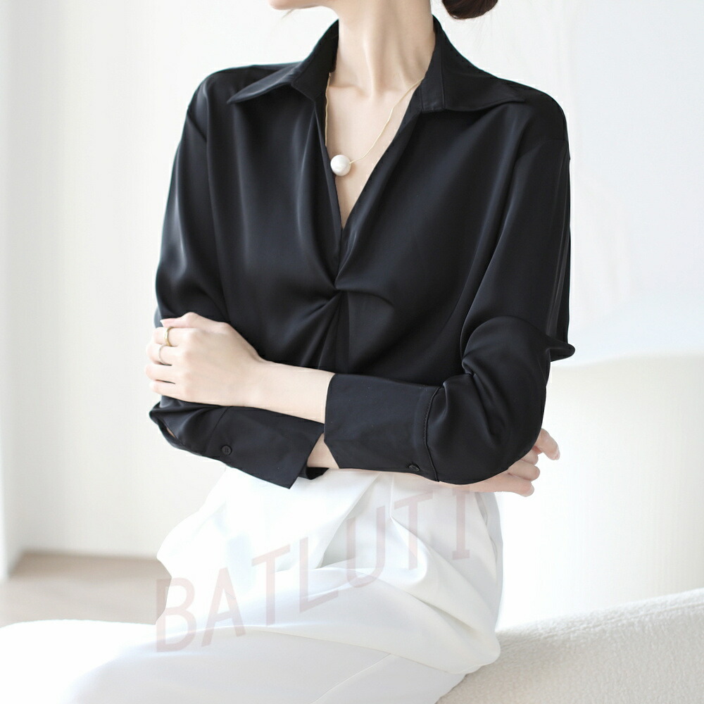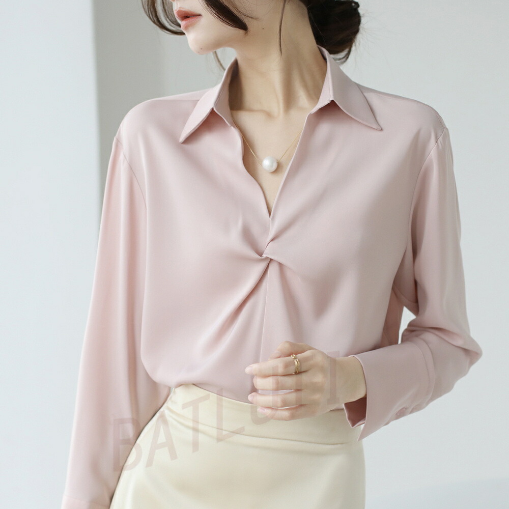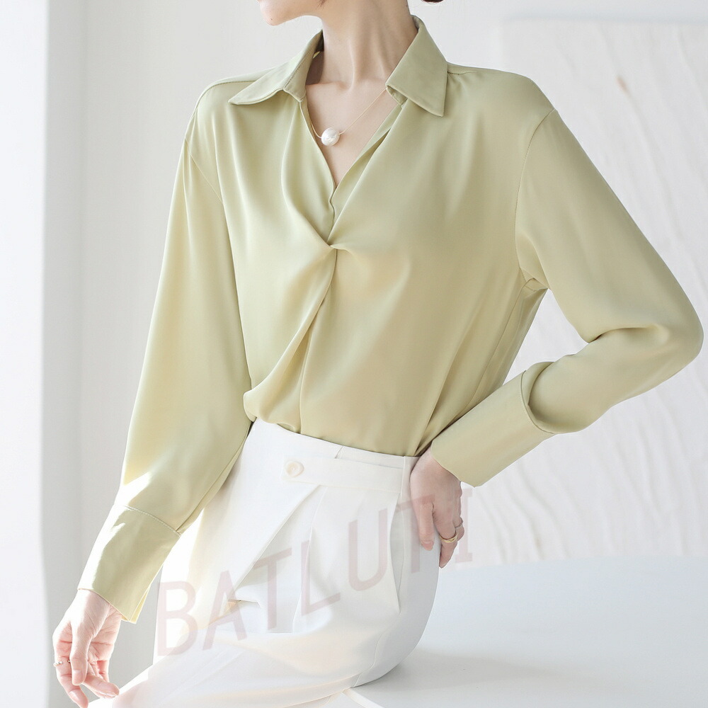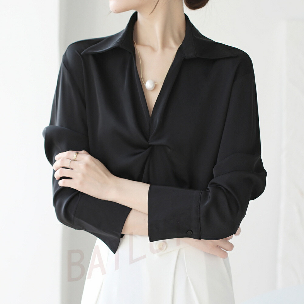 ブラウス シャツ 上品 シフォンブラウス 前開き オフィス 韓国風 トップス オシャレ 長袖シャツ カジュアル 通勤 仕事 OL 可愛い