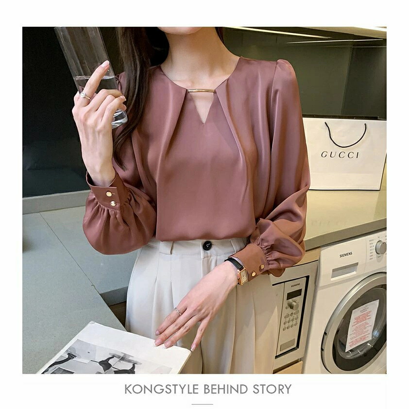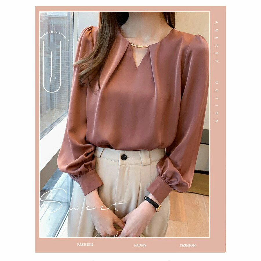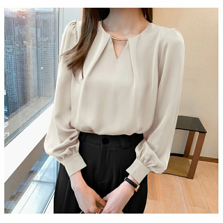 商品名 ブラウス レディース きれいめ 40代 春夏秋新作 オシャレシフォンブラウス Vネックシャツ パフスリーブ 長袖トップス 大人 通勤OL ゆったり シャツ30代 50代着痩せ 韓国風 夏春秋 ファッション 薄手 人気新作 通勤 送料無料