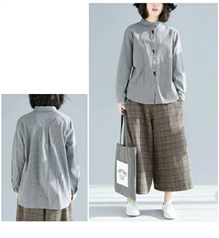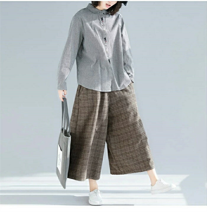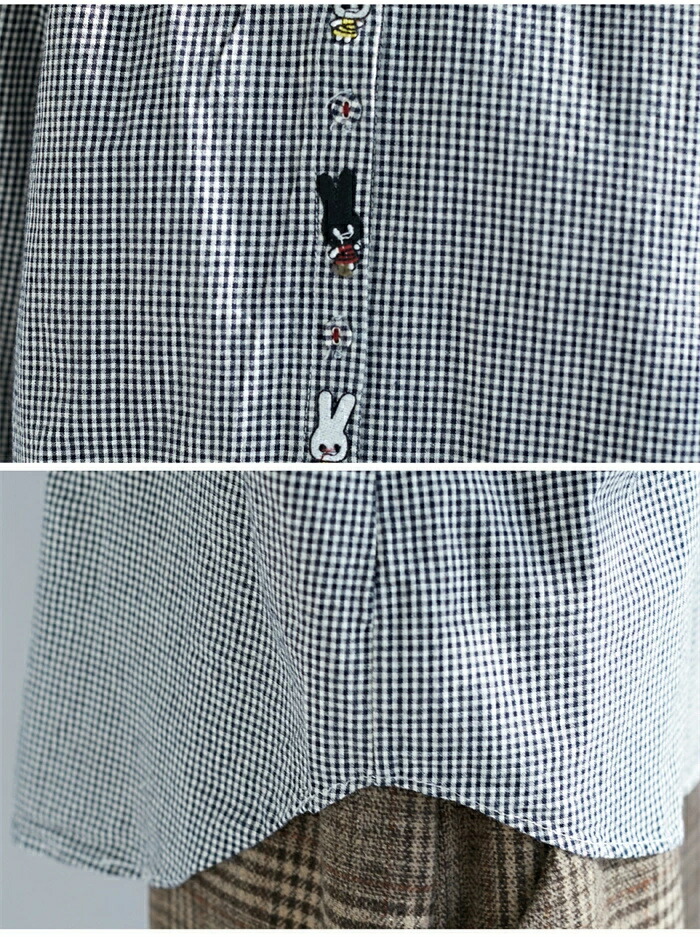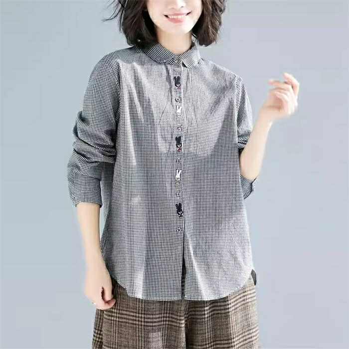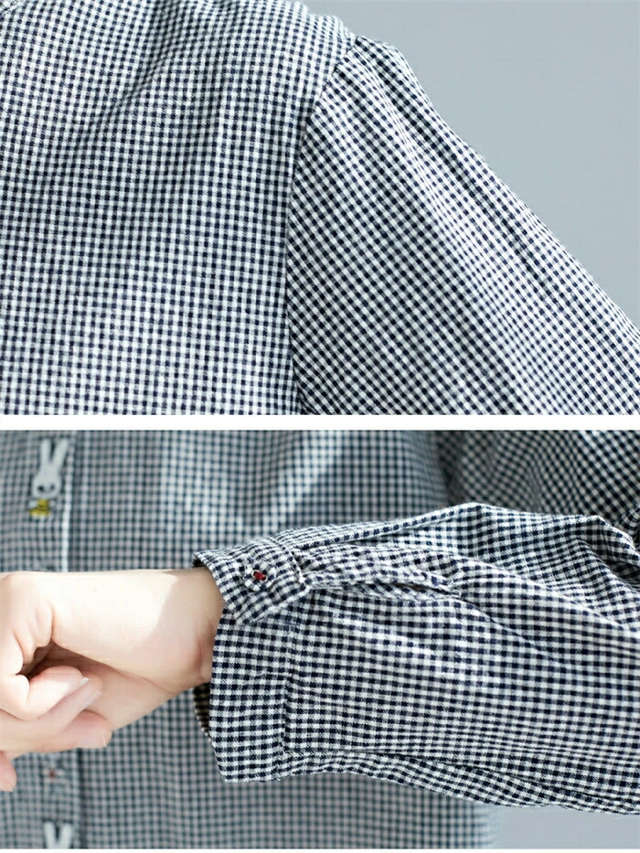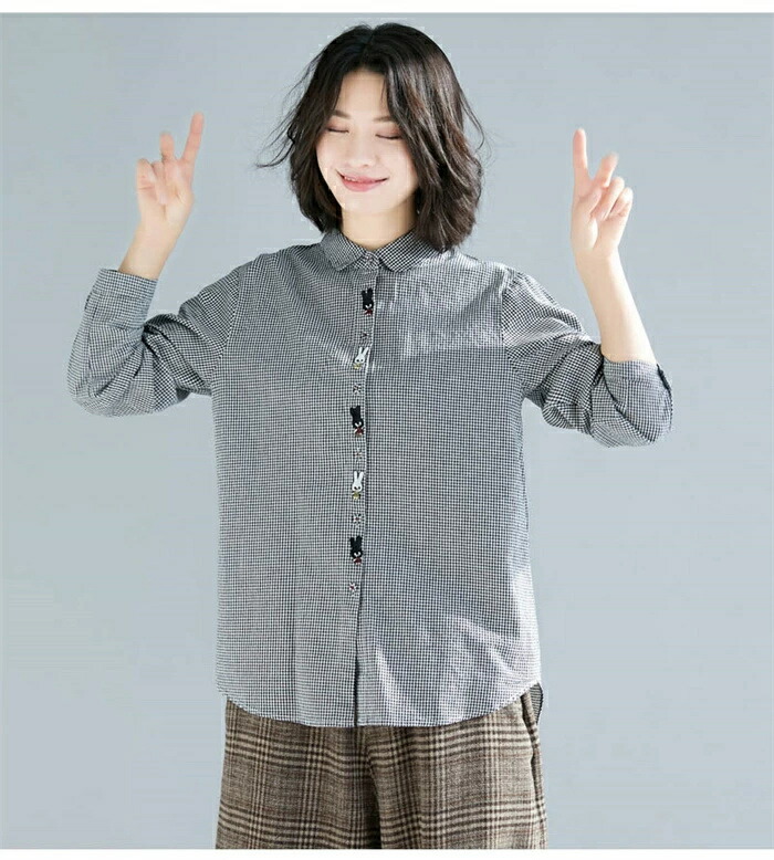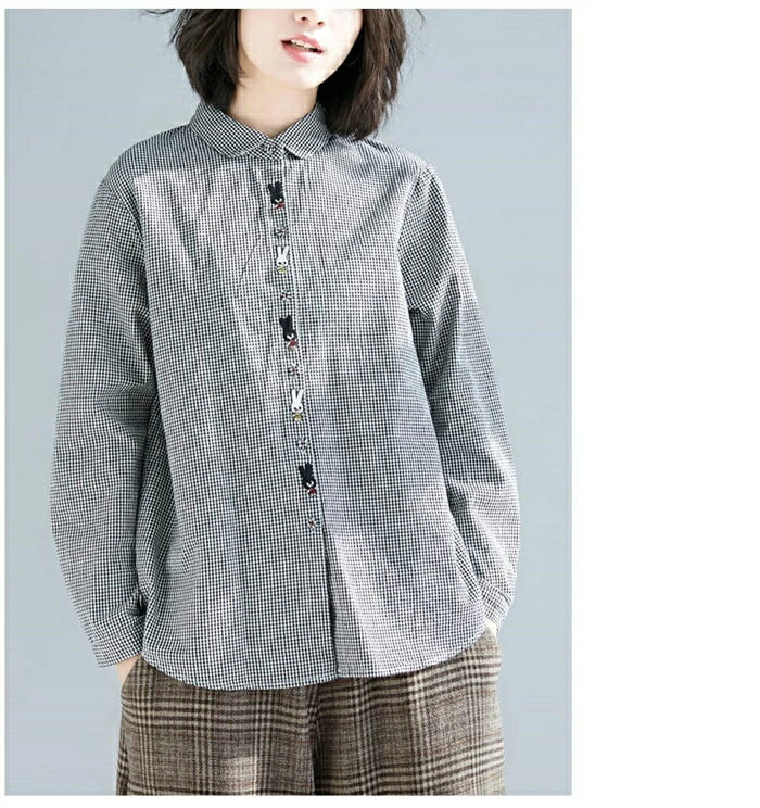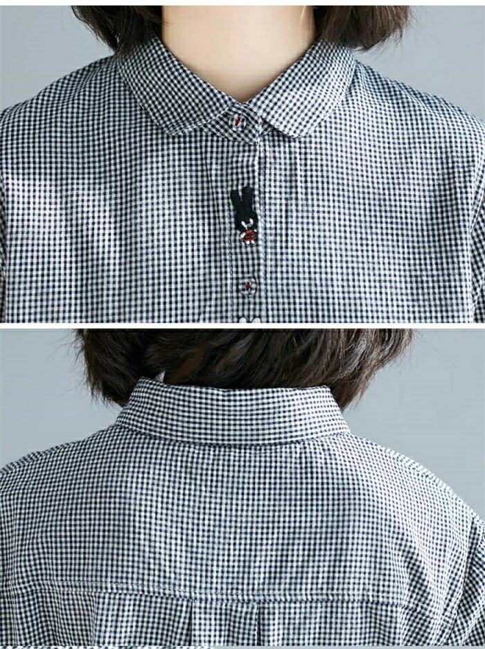 商品名 シャツ レディース 長袖 チェック柄 シャツ ブラウス 秋 トップス 綿混 シャツ チェック 刺繡 大人可愛い 大きいサイズ ゆったり 体型カバー カジュアル 柔らか おしゃれ 森ガール 着回し 体型カバー かわいい 送料無料