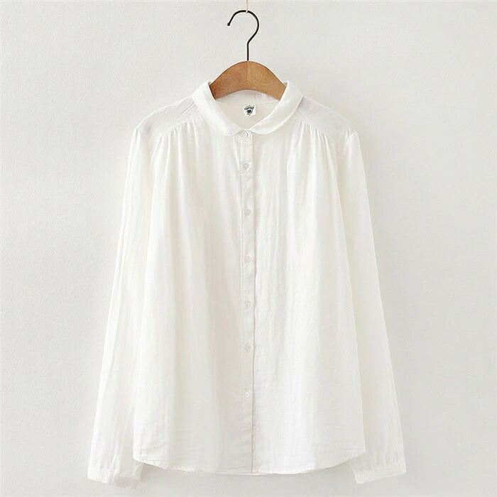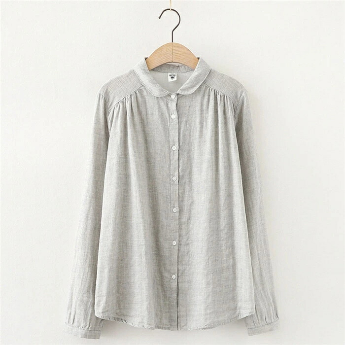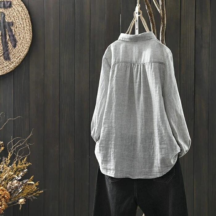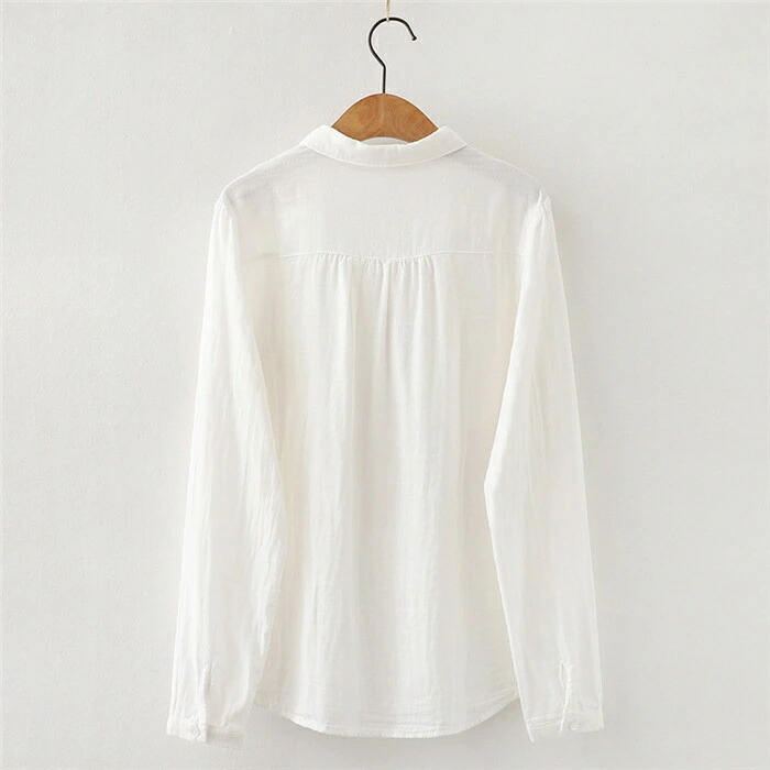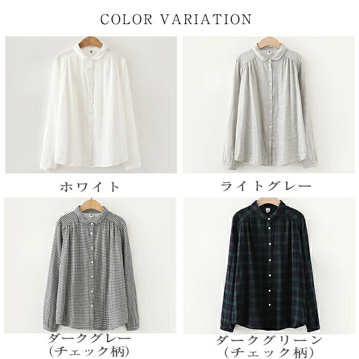 商品名 綿100% シャツ レディース 長袖 襟付き 綿 ダブルガーゼ スーツ インナー 長袖 通勤 OL オフェス ストライプ チェック ナチュラル 着痩せ ゆったり 体型カバー カジュアル 大人 可愛い 柔らか 春 秋 無地 チェック 送料無料