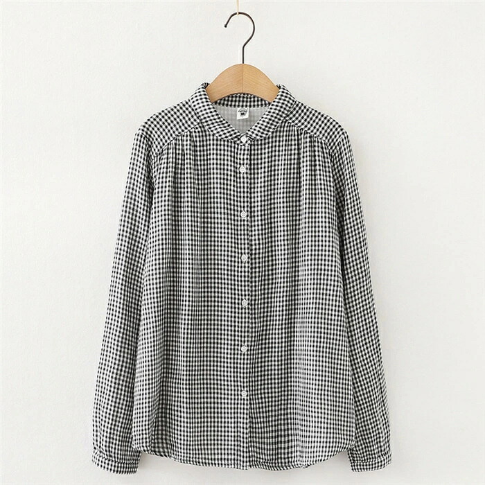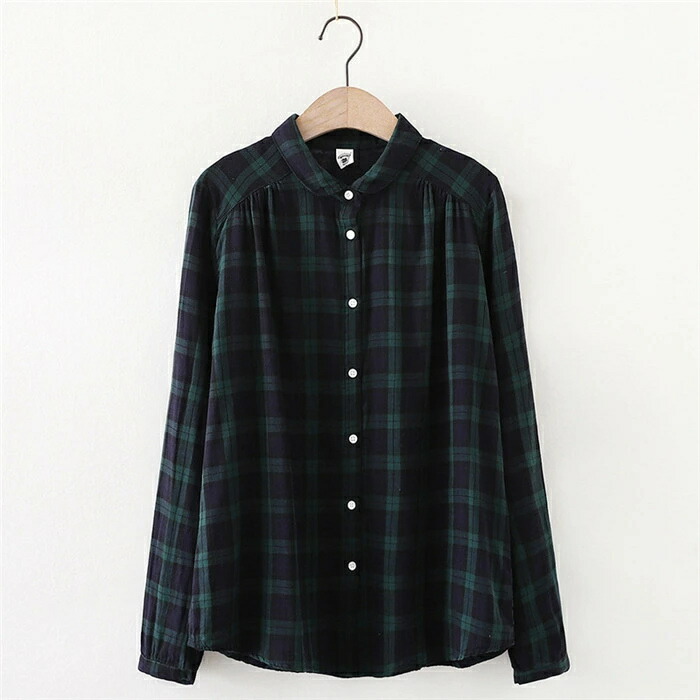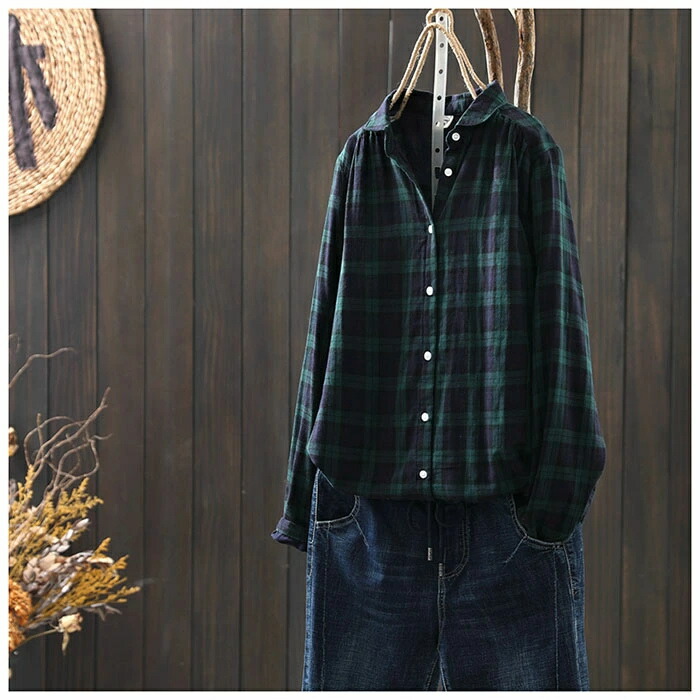 シャツ レディース 長袖 カジュアル コットン100% 丸襟 ストライプ ギンガムチェックレディースファッション トップス シャツ ブラウス