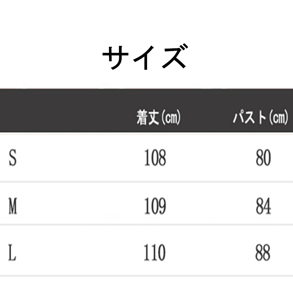 サイズ(cm):S、M、L S:バスト:80CM 着丈:108CM