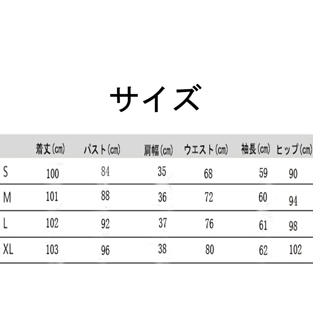 サイズ(cm):S、M、L、XL S:バスト:84CM ウエスト:68CM 着丈:100CM 肩幅:35CM 袖長:59CM ヒップ:90CM