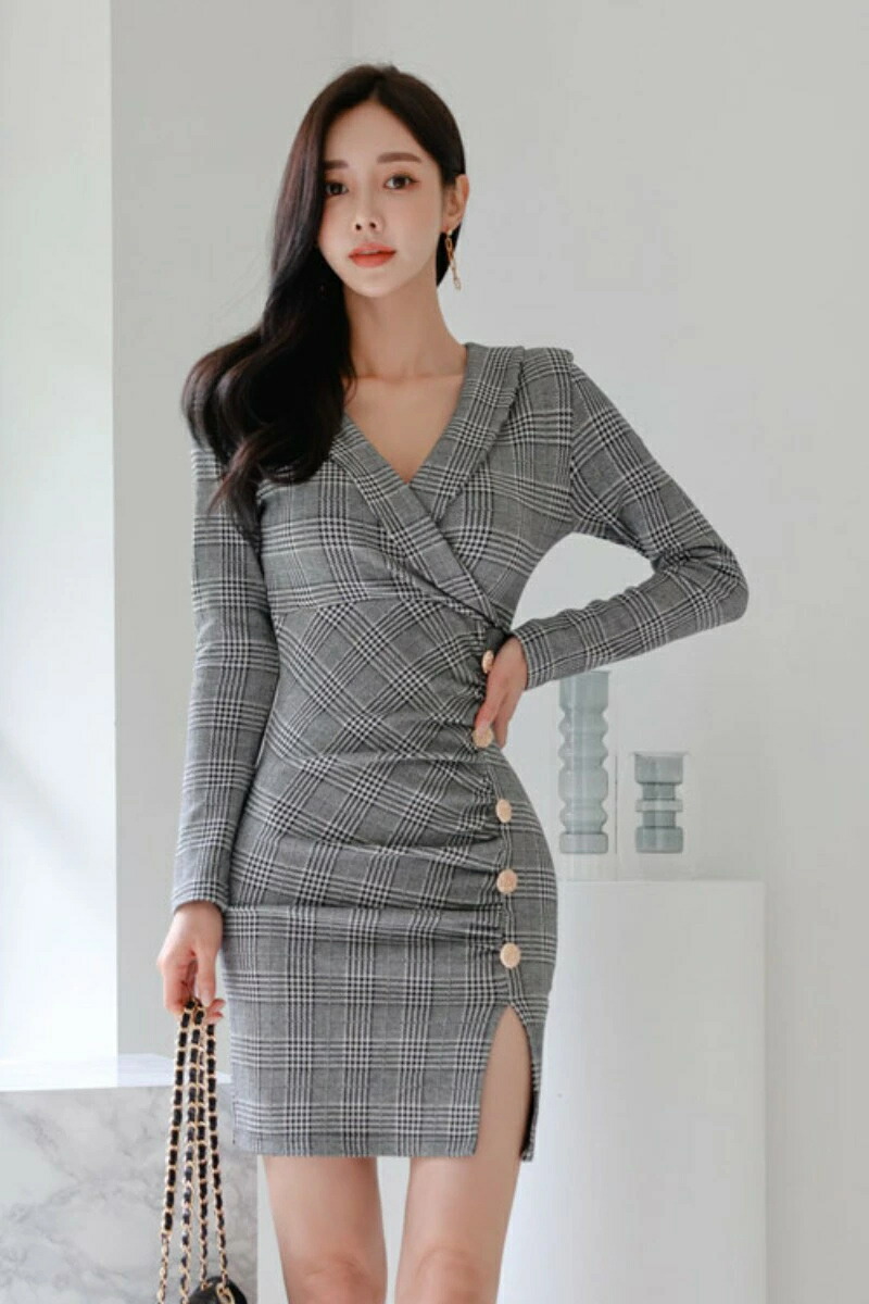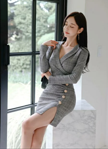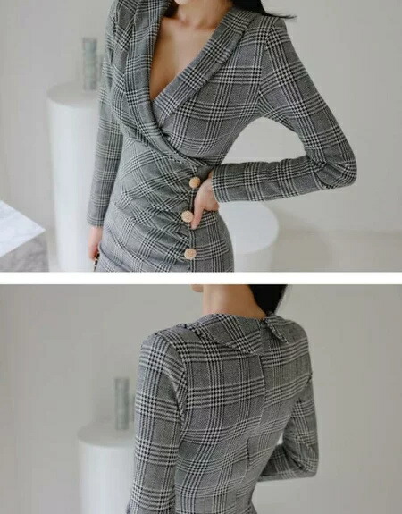 商品名 タイトワンピース 姫系ワンピース ワンピース インポート チェックひざ丈 ミドル丈 ミディアム丈 Vネック パーティドレス 長袖 お嬢様 セクシー ミニワンピース OL 上品 オフィスレディー 二次会 結婚式 新作 韓国ファッション 送料無料