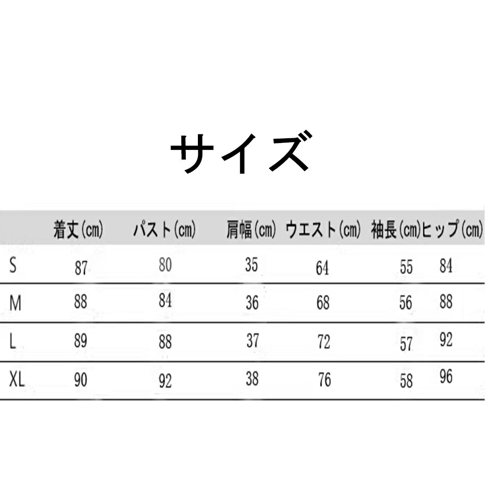 サイズ(cm):S、M、L、XL S:バスト:80CM ウエスト:64CM 着丈:87CM 肩幅:35CM 袖長:55CM ヒップ:84CM