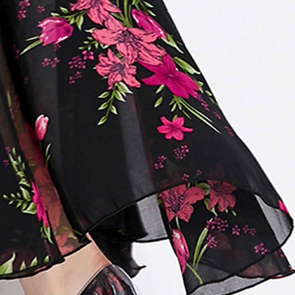ふんわり広がるフレアシルエットで、ヒップや太もも周りをしっかり体型カバーします。ウエストマークすることで着痩せ効果!