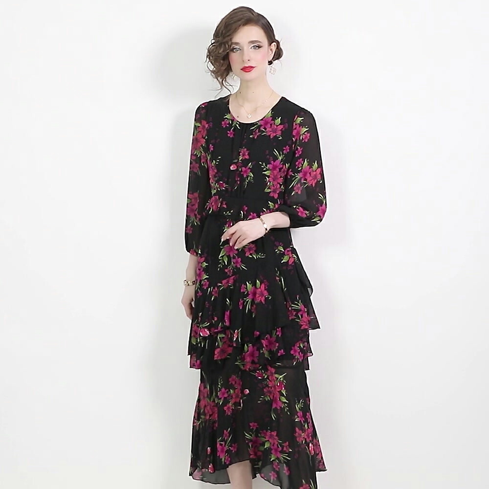 着心地抜群ながらも大人きれいなシルエットのミモレ丈ワンピース。