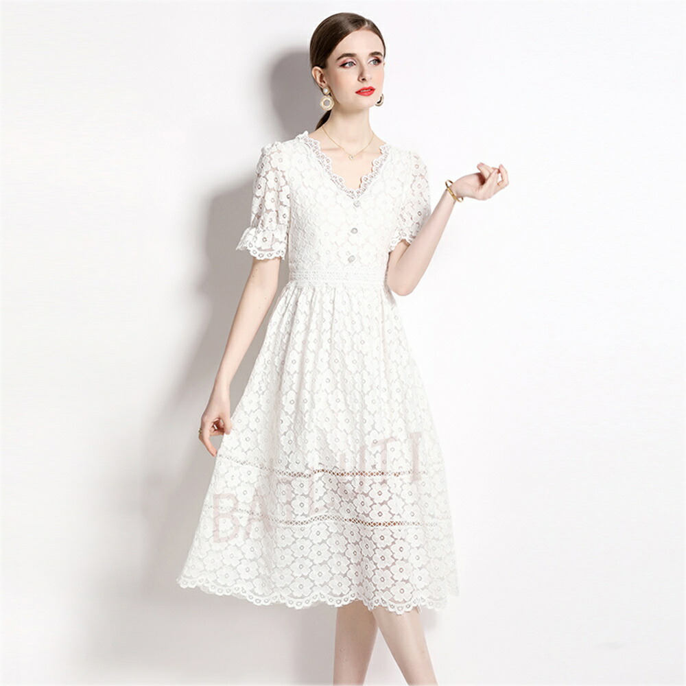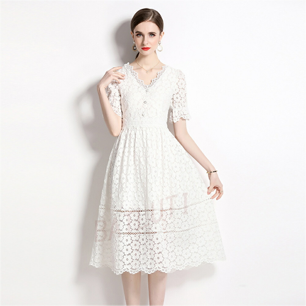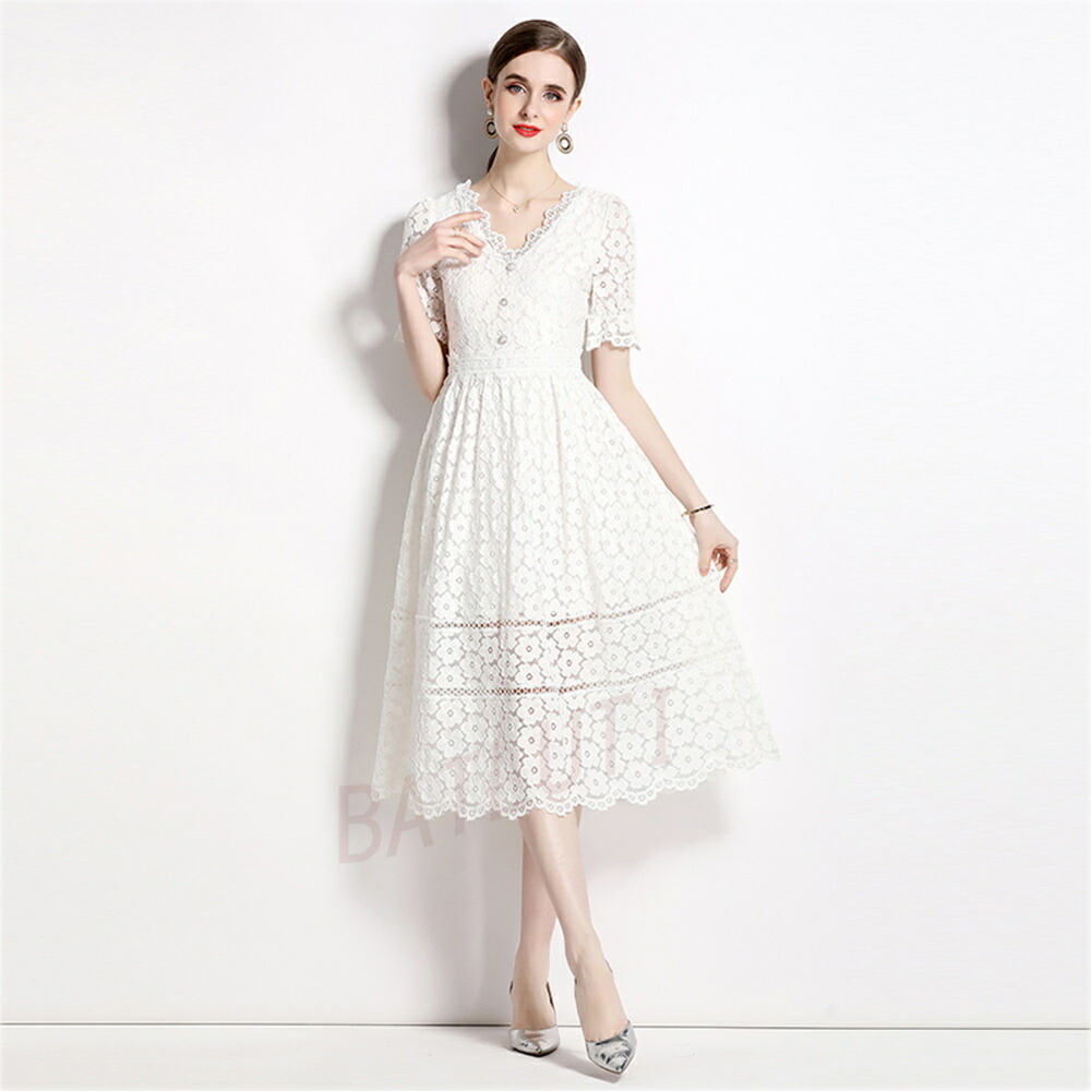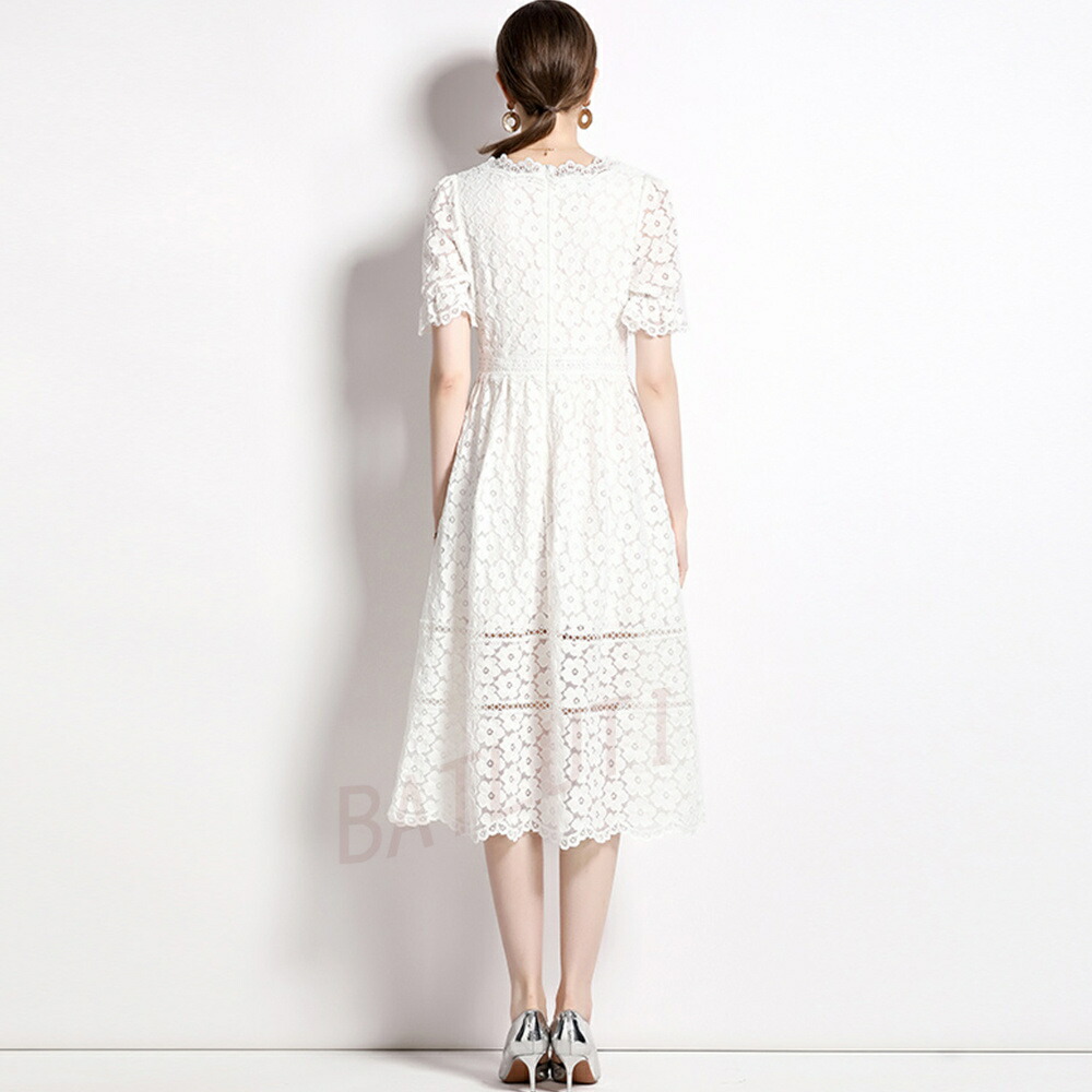 レースワンピース 半袖 ワンピース カジュアル ロング丈 ベストワンピス 二次会 リゾート 母の日 美シルエット 同窓会
