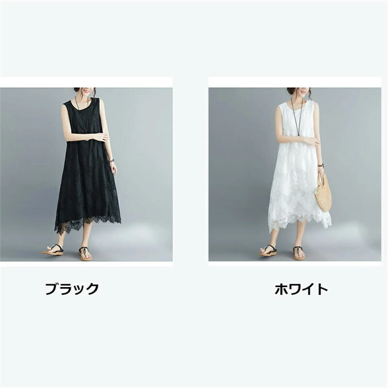 商品名 マキシワンピース レディース レース 花柄 Aライン ノースリーブ ボートネック ロング丈 ミモレ丈 フレア ゆる 無地 シンプル きれいめ 20代 30代 40代 送料無料