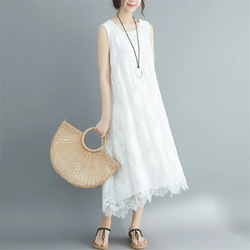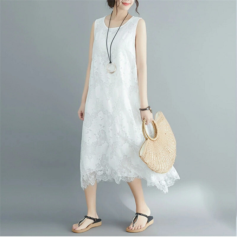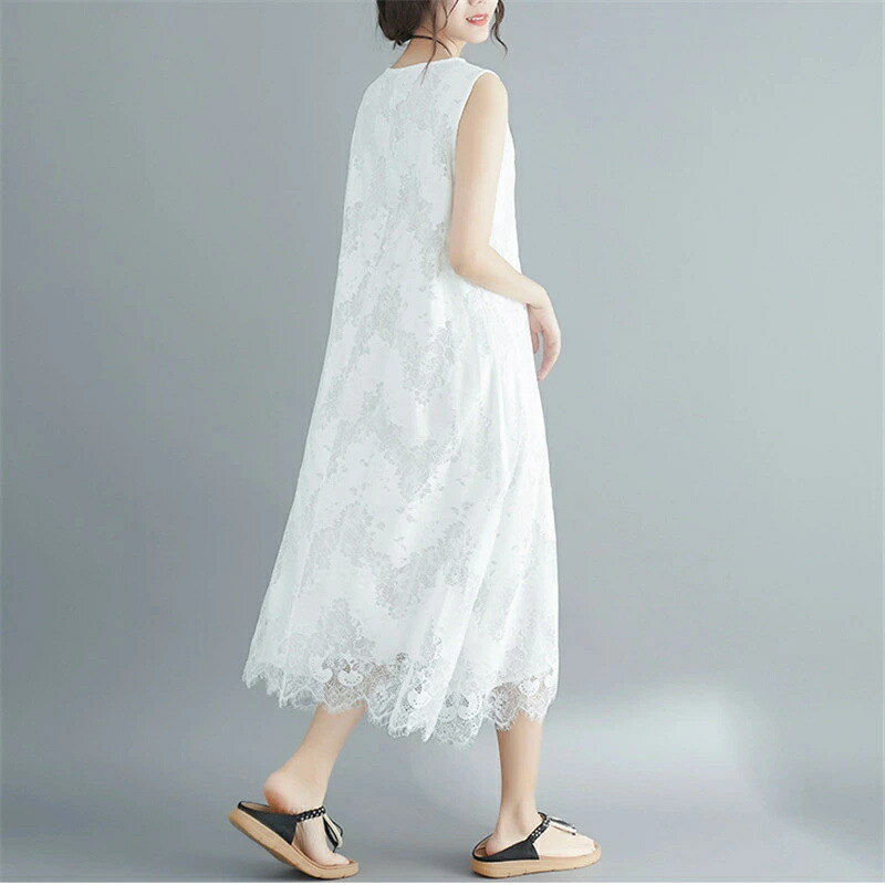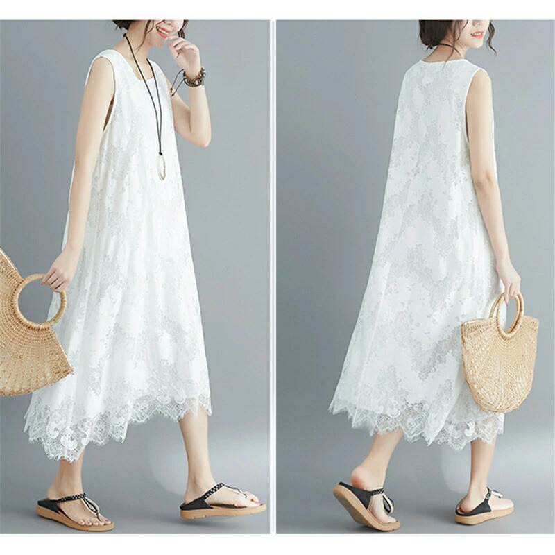 マキシワンピース レディース レース 花柄 Aライン ノースリーブ Uネック ロング丈 ミモレ丈 フレア ゆる 無地 シンプル きれいめ ゆったり カジュアル