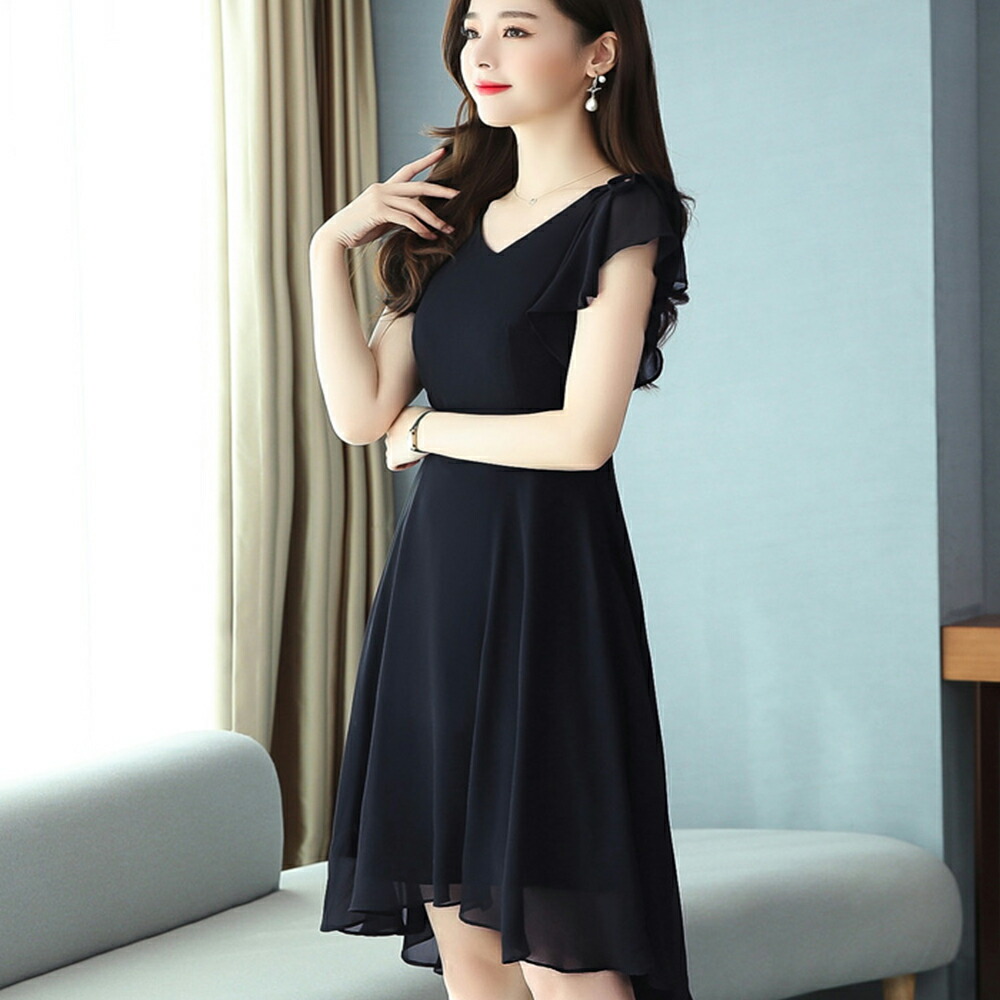着心地抜群ながらも大人きれいなシルエットのミモレ丈ワンピース。