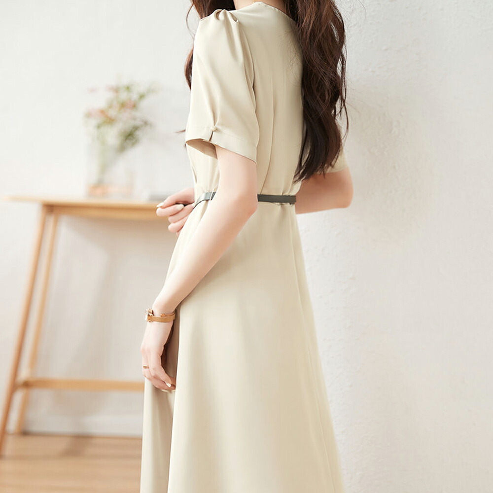 夏ワンピース 新作 春夏 シャツワンピース 気質 秋プリーツワンピース 膝丈ワンピース 二次会 長袖ワンピ 着痩せ きれいめ