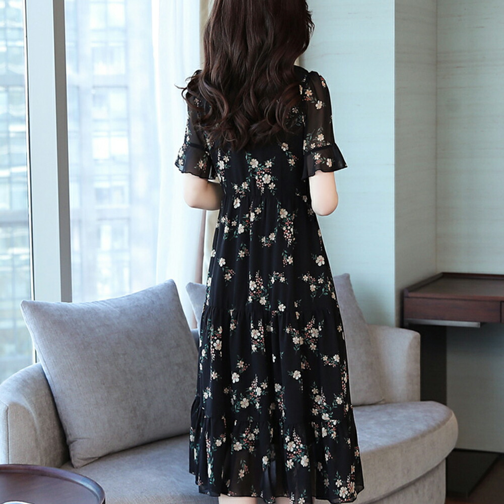 商品名 リゾートワンピース レディース サマードレス ロング マキシ丈ワンピース バックシャン 半袖 シフォン 透け Aライン ハワイ 沖縄 旅行用 大人 20代 30代 40代 可愛い お洒落 花柄 シャーリング ふんわり フェミニン 薄手 裏地付きリゾートファッション 送料無料