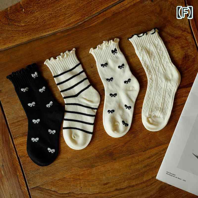 1627207: A:ドット×リボン(4足組) B:ドット×チェリー(4足入) C:ドット×ボーダー(4足入) D:ボーダー E:ミックスA(4足組) F:ミックスB(4足組)