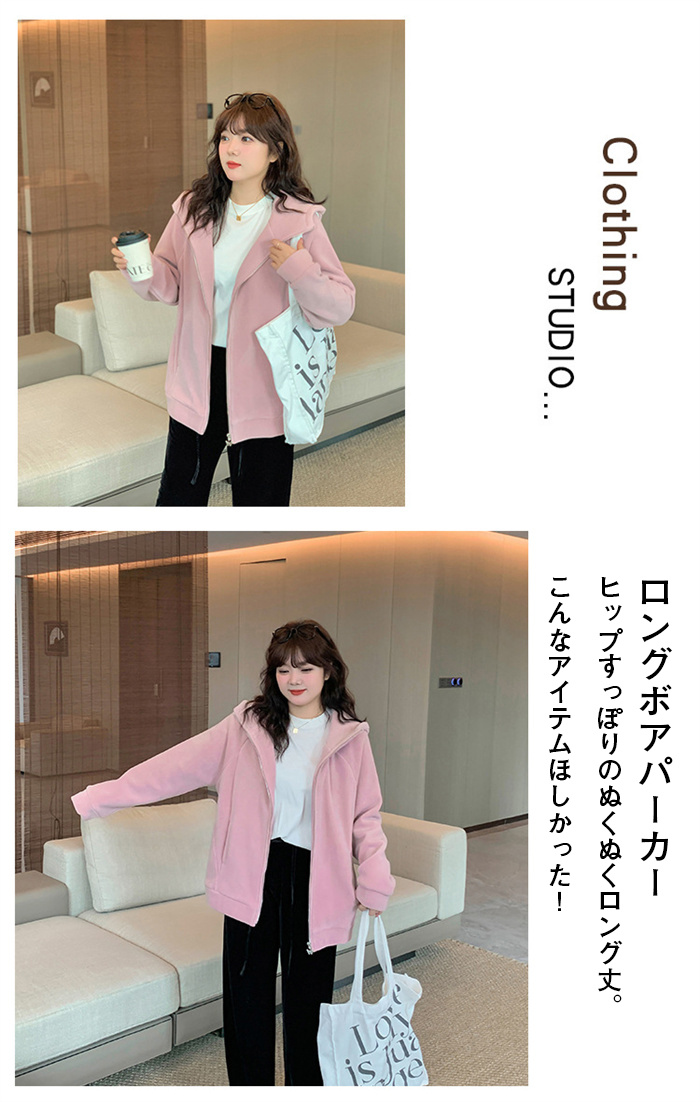 パーカー 厚手 ボアロングパーカー レ