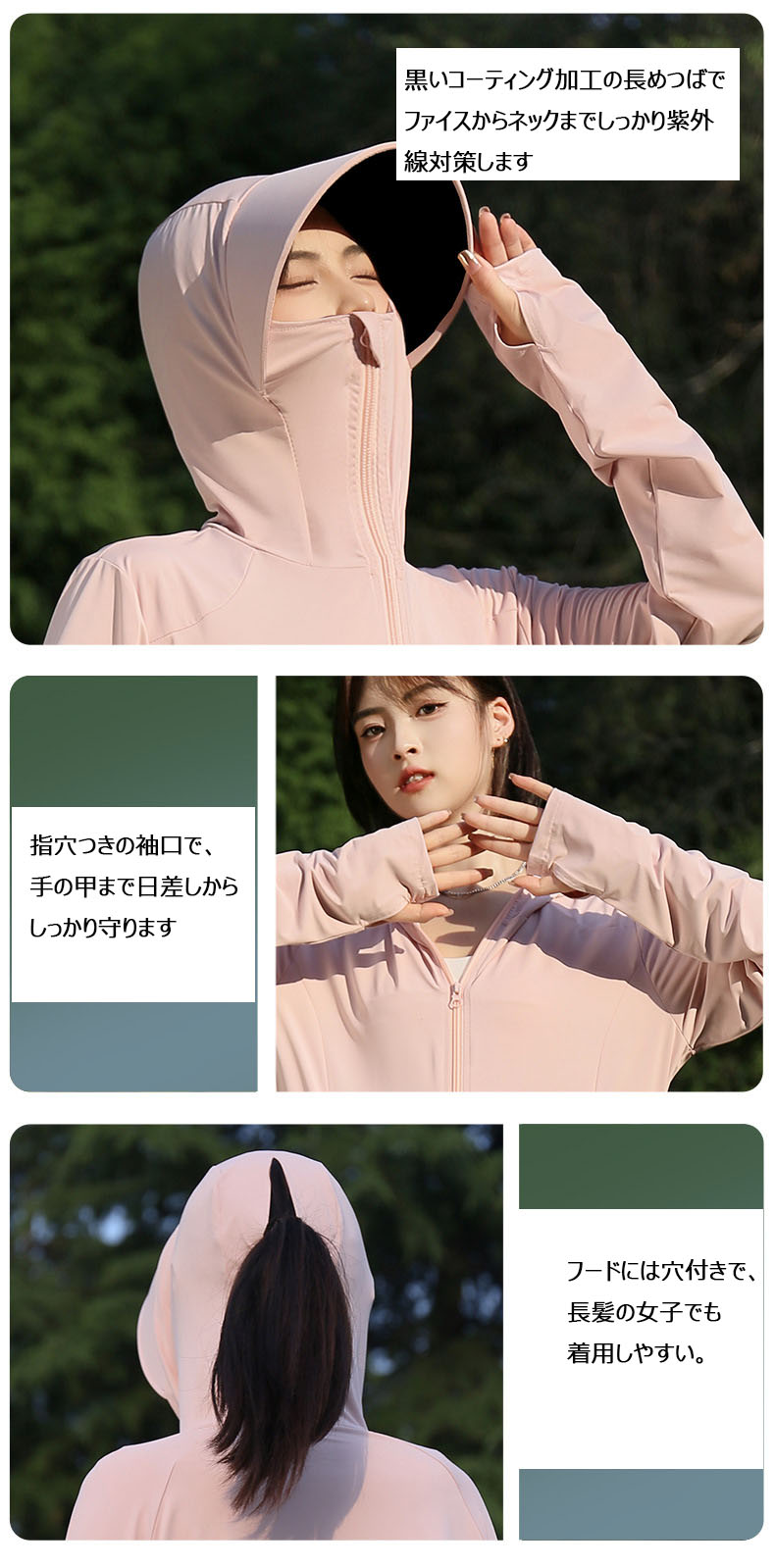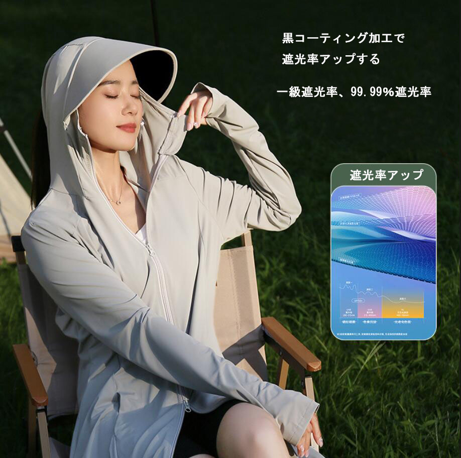 UV パーカー 冷感 ジップアップ 紫