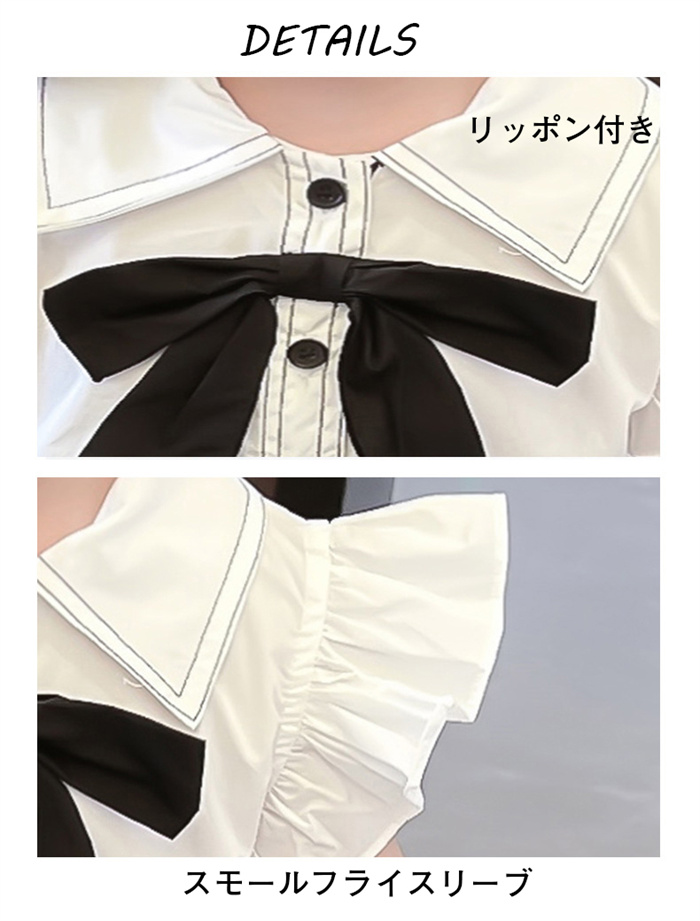 シアースリーブ ドッキングシャツ ボウタイシャツブラウス