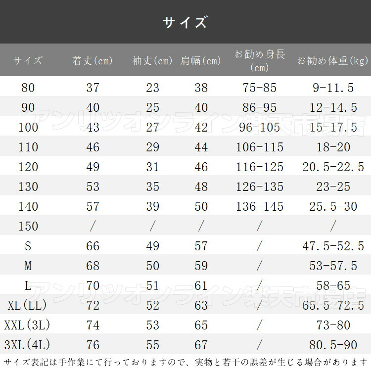 vertical-key: 子供 80 子供90 子供100 子供110 子供120 子供130 子供140 大人 S 大人 M 大人 L 大人 XL(LL) 大人 2XL(3L) 大人 3XL(4L)