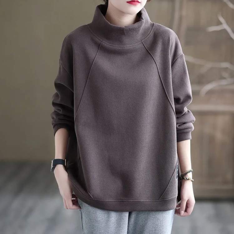 タートルネック 裏起毛素材のプルオーバ