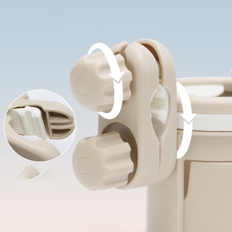 【取り付け簡単】面倒な工具を使用せず、ベビーカーのハンドルに固定用のパッド当てて、本商品をネジで締めるだけの簡単装着。クリップは360°回転するので、傾斜のスティックバーにも取り付け可能です。