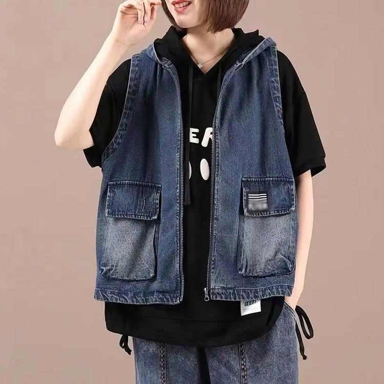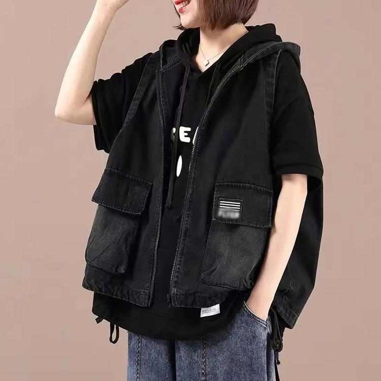 レディース デニムベスト 前開き フー