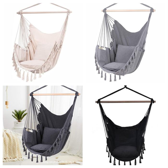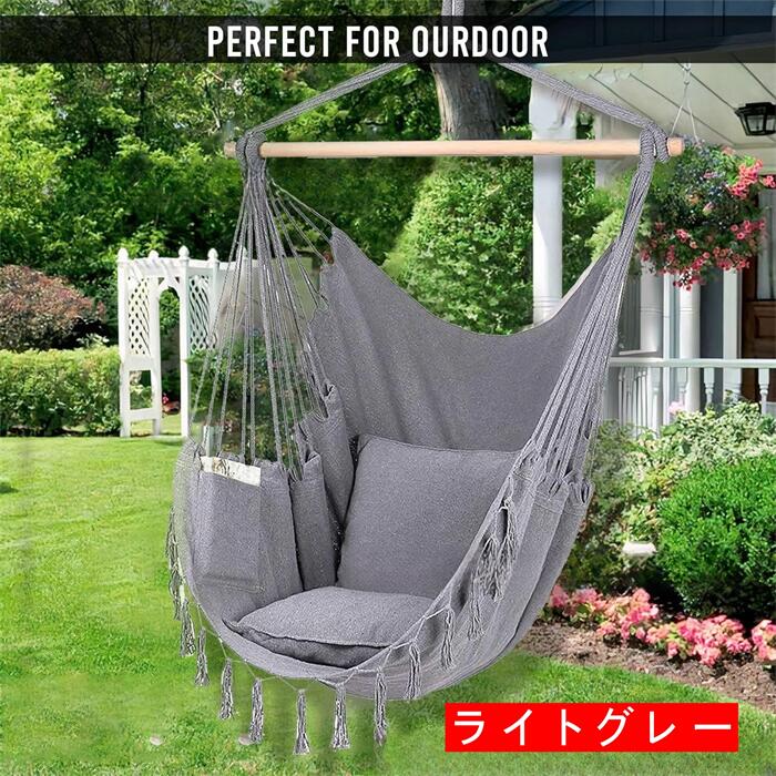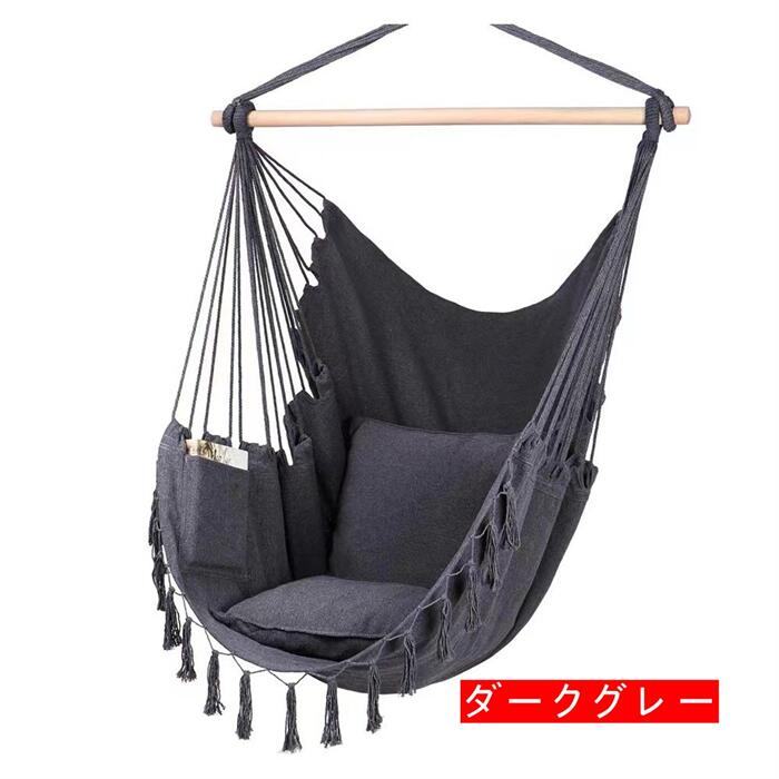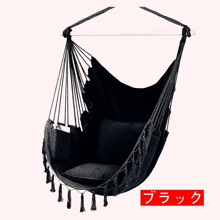 ハンモックチェア 吊り下げ式 ハンギングチェア クッション付き コットン ガーデンチェア スイングチェア 椅子 吊り椅子 大人&子供兼用 屋内 屋外用 中庭 ポーチ ガーデン 寝室 裏庭 キャンプ ロ