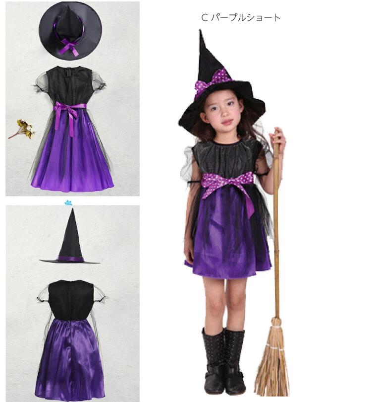 ハロウィン 衣装 子供 魔女 パープル