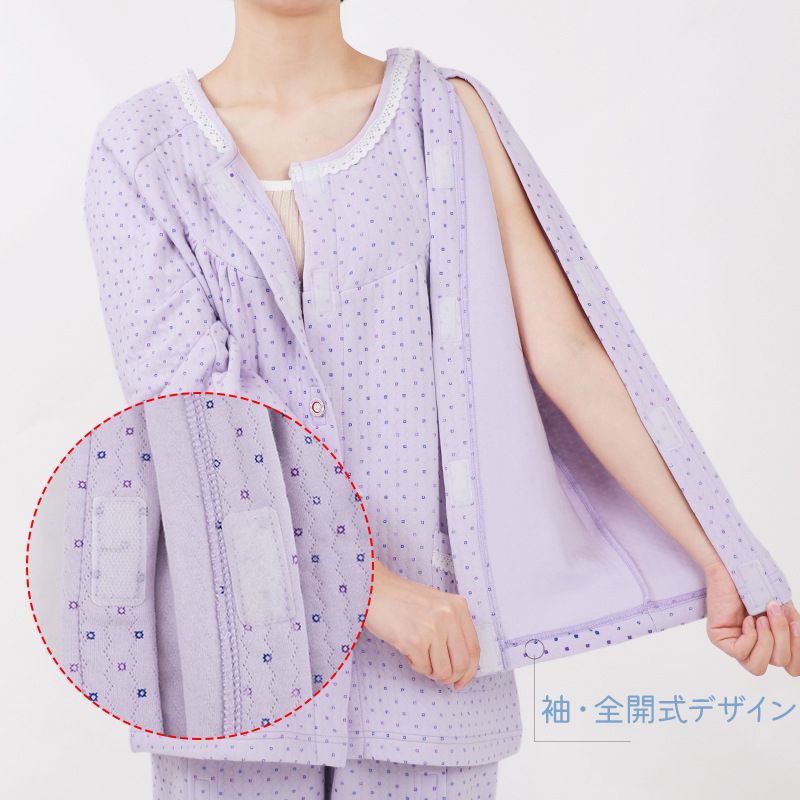 前開き部分、袖をフルオープンできる介護