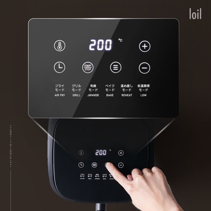 【97%オイルカット】食材がより均一に加熱されるように進化し続けてきた360°熱風循環技術がCOSORIノンフライヤーの特徴で、オイルを97%カットし、カロリーや脂分を気にせず、いつでも「さっぱり」とした揚げ物を召し上がれます。肉料理を調理する場合、オイルを使わなくても肉汁たっぷりの食感になれるので、油のコストも節約できます。おしゃれなタッチパネルで手軽に操作でき、ボタンを押すだけで調理がスタートするので、初心者でもすぐに使える便利な設計になっています。