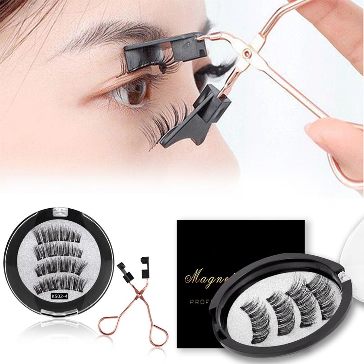 磁気まつ毛を貼り付けるだけで、簡単に挟んで装着できます。