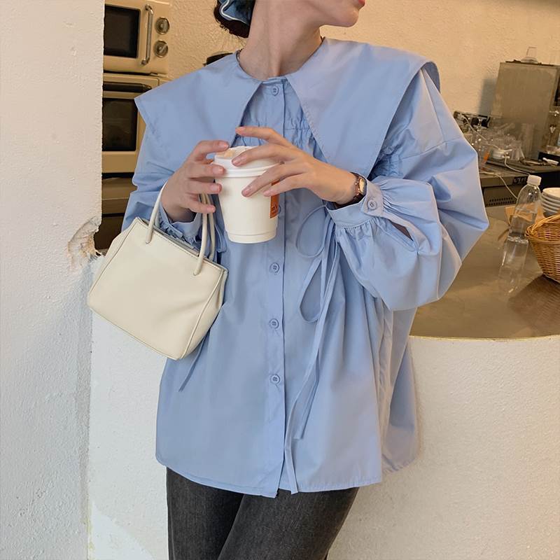 シアースリーブ ドッキングシャツ ボウタイシャツブラウス