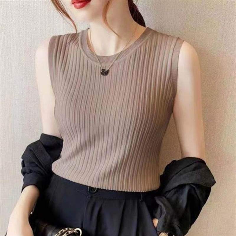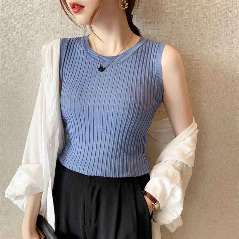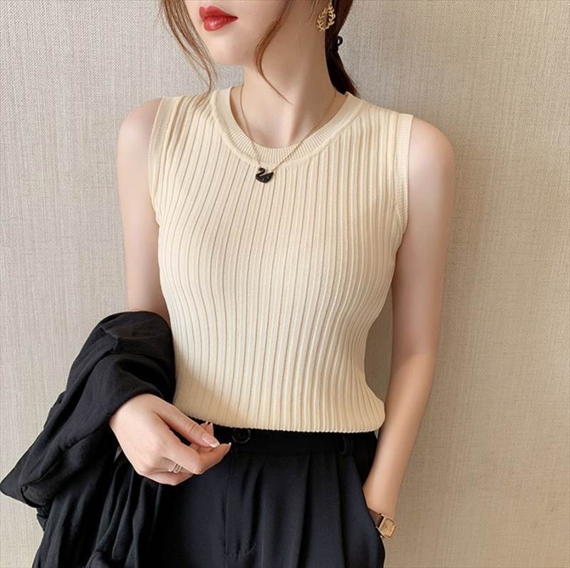 トップス ニットソー 袖なし ノースリ