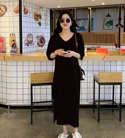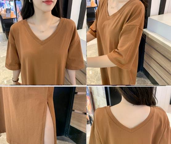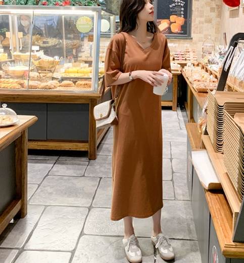 ワンピース Tシャツ 袖あり 半袖 V