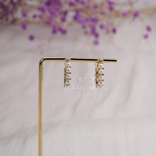 MARIMAGI 金属アレルギー キャッチレス シルバー ゴールド ニッケルフリー フープピアス 小さめ リングピアス 可愛い アクセ パール 真珠 おしゃれ 大人