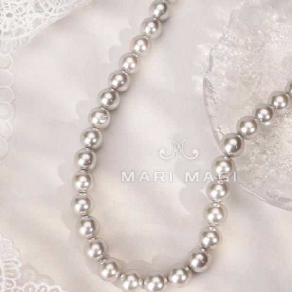冠婚葬祭にぴったりのパールネックレス 真珠8mm、ガラス素材、スワロフスキー使用 シルバーカラーで上品なデザイン