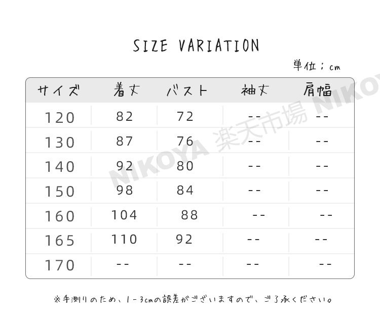 horizontal-key: 120cm 130cm 140cm 150cm 160cm 165cm