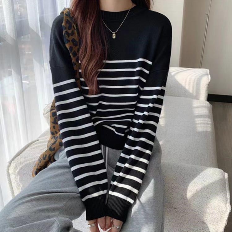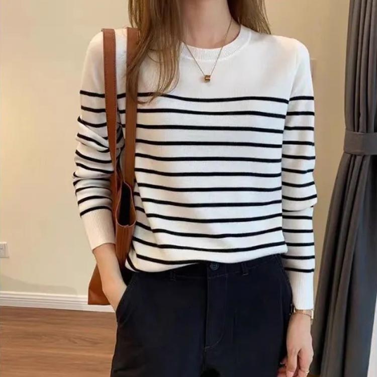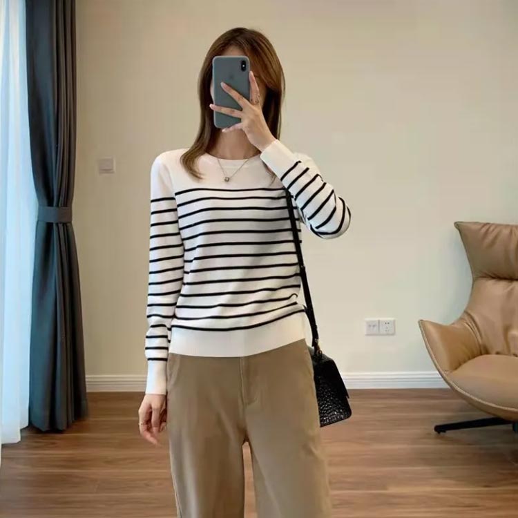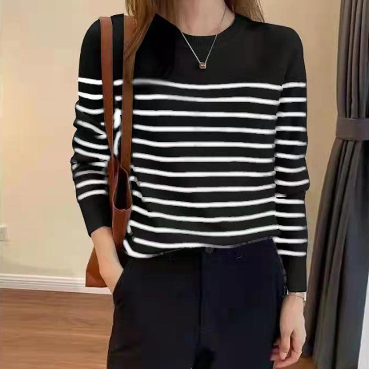 長袖 リブカットソー ボーダー柄 トッ