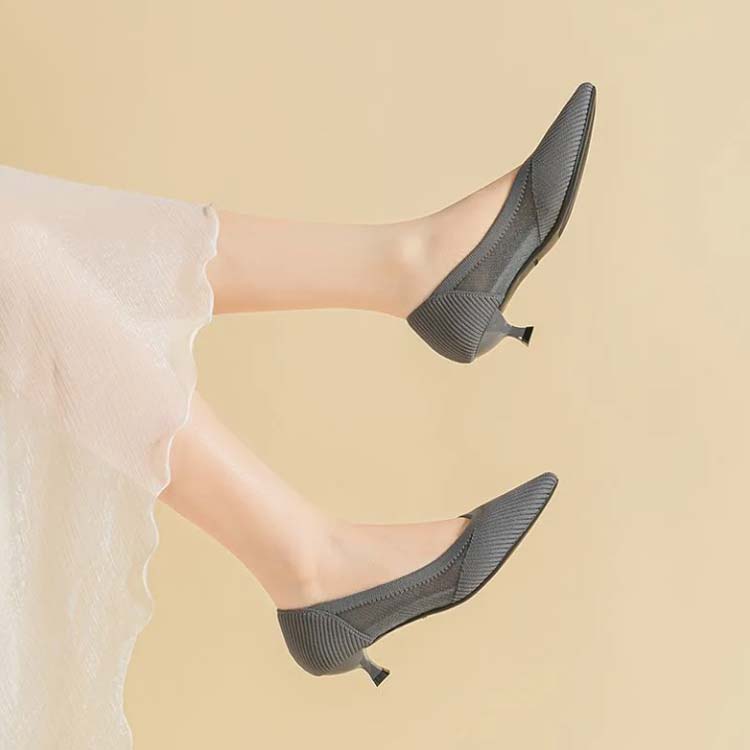 パンプス ニット ローヒール ストレッ