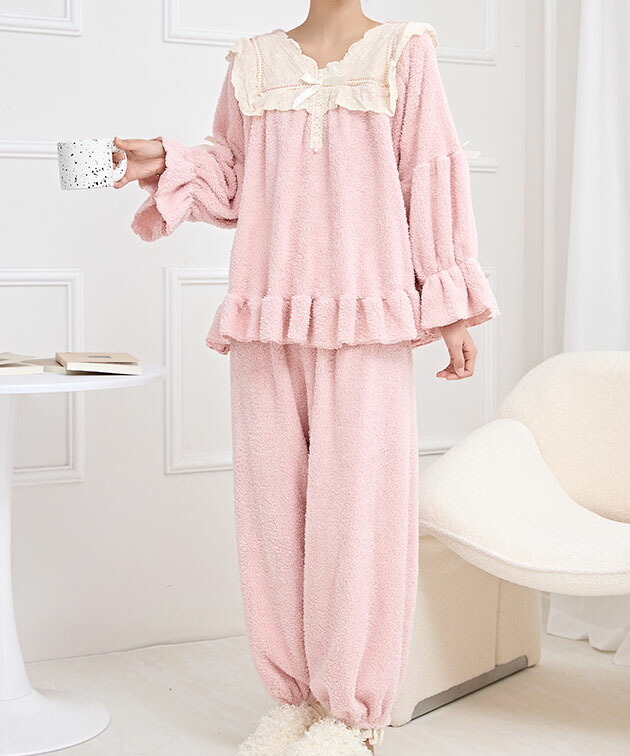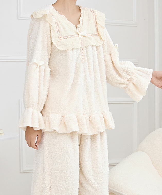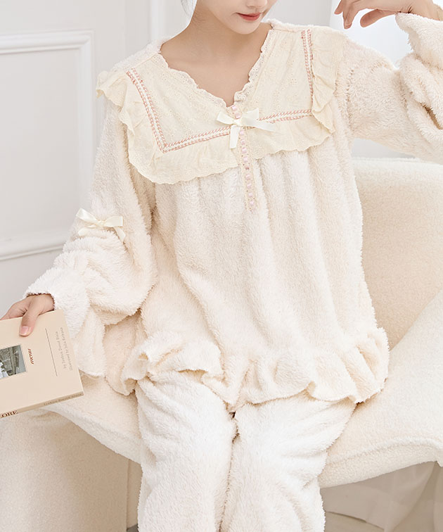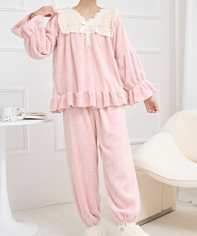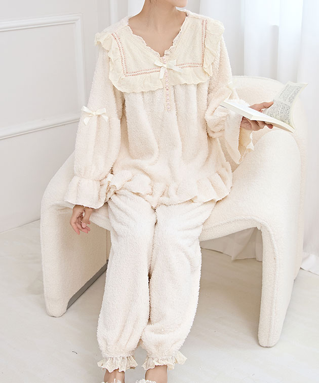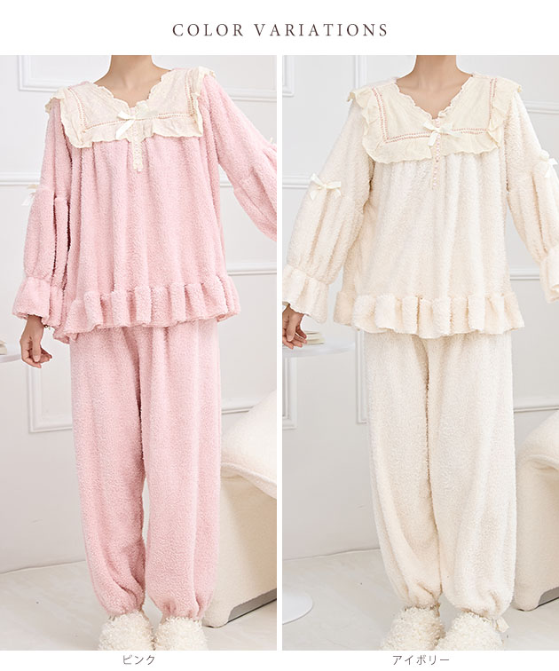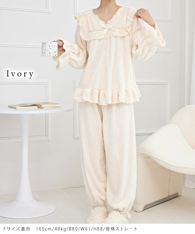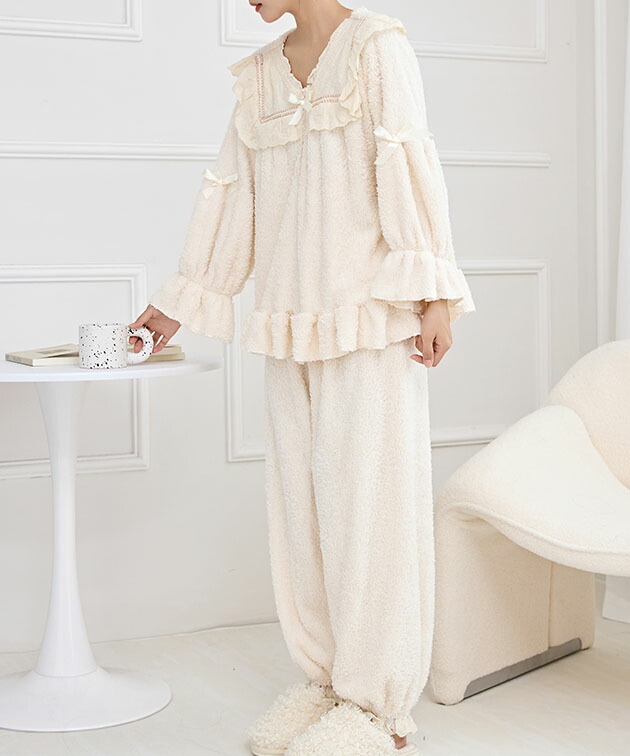 Vネック フリル リボン ふわもこ ル