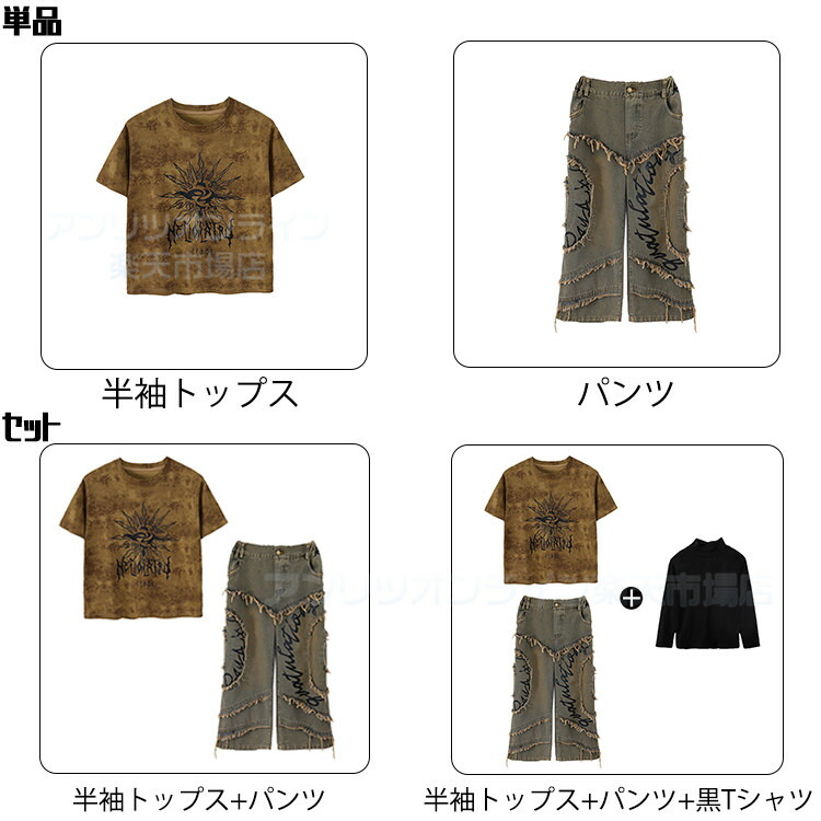 vertical-key: 半袖トップスのみ パンツのみ 半袖トップス+パンツ 半袖トップス+パンツ+黒Tシャツ
