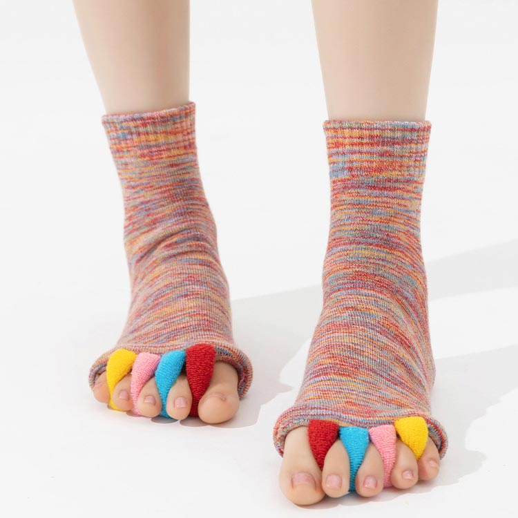 【マッサージ効果でリラクゼーション: 】足指の間隔を広げることで、足裏のツボを刺激し、軽いマッサージ効果を発揮。日中の疲れやストレスを軽減し、心身ともにリラックスできます。