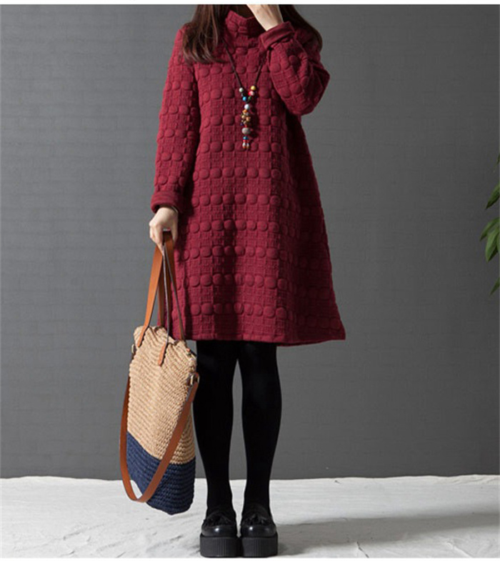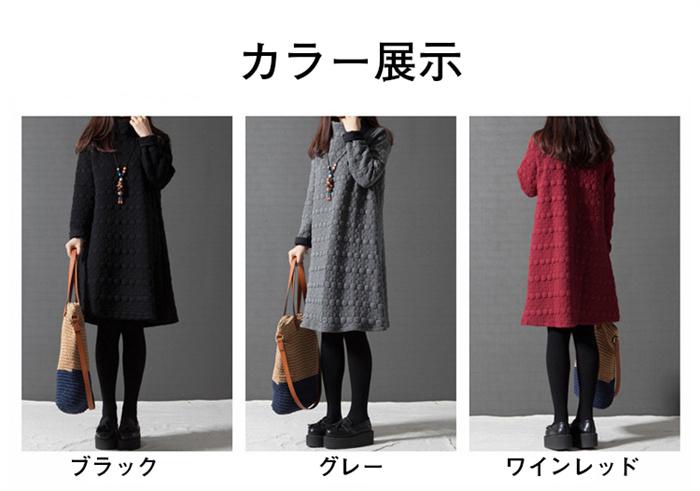 ワンピース ハイネック Aライン 長袖