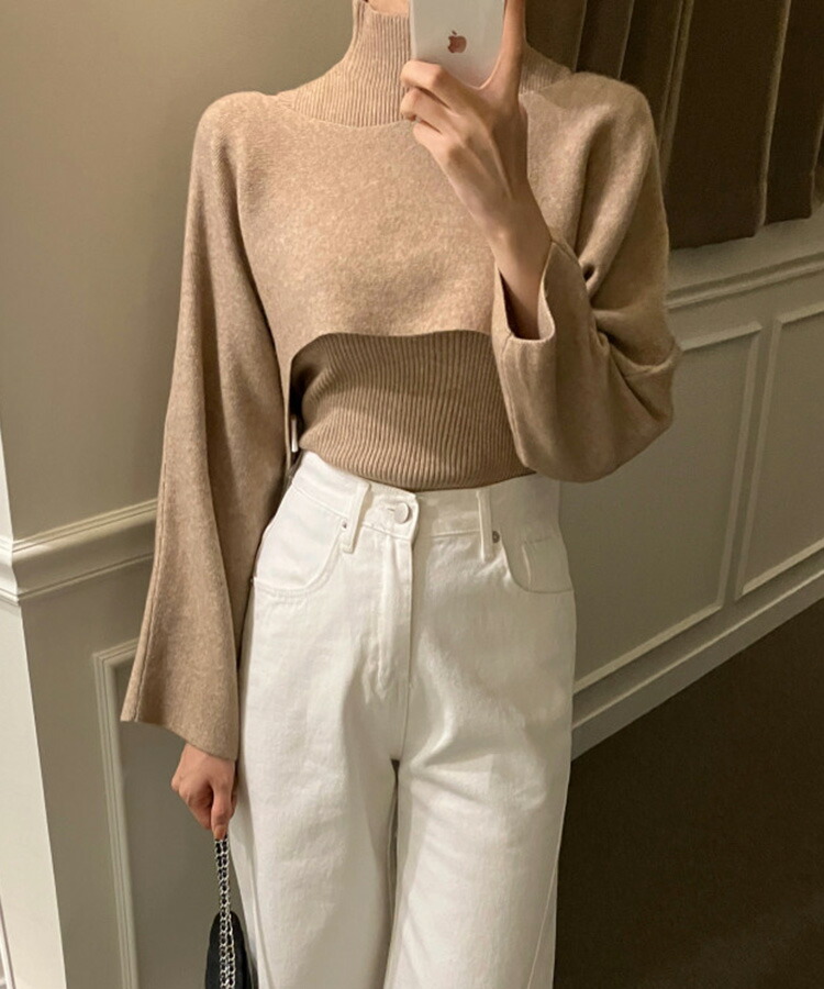 シアースリーブ ドッキングシャツ ボウタイシャツブラウス