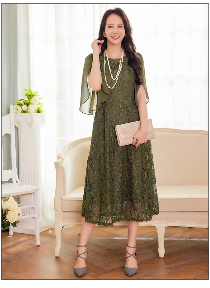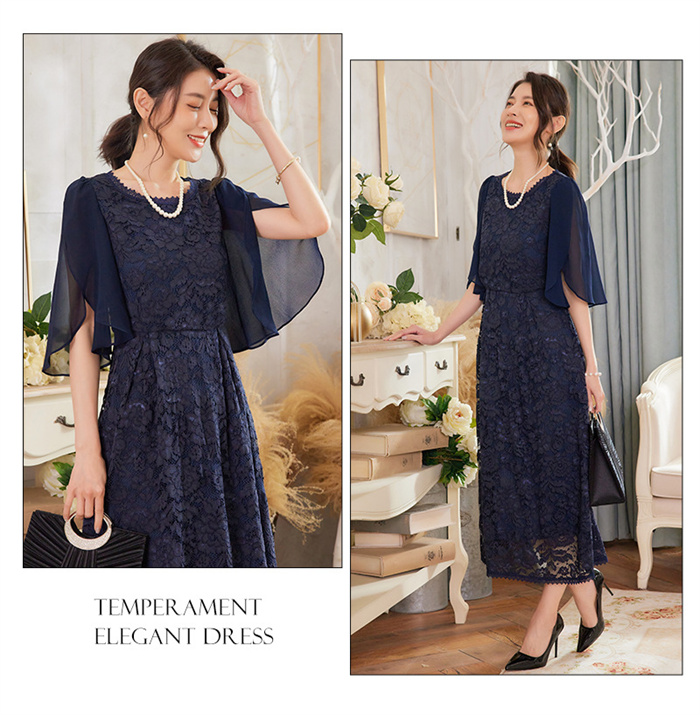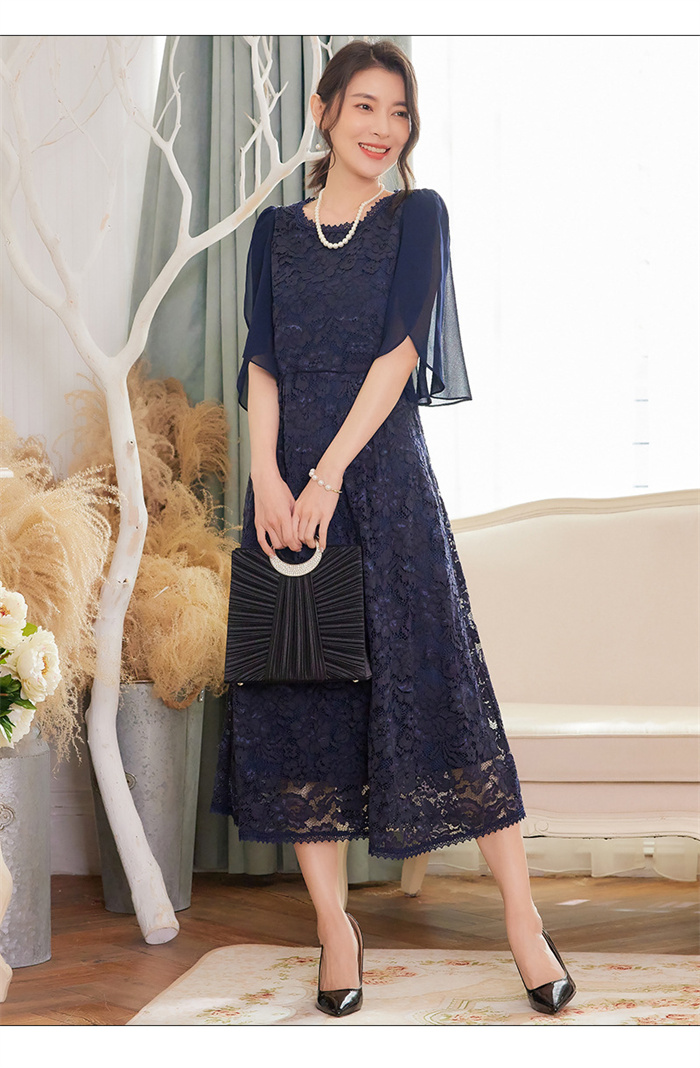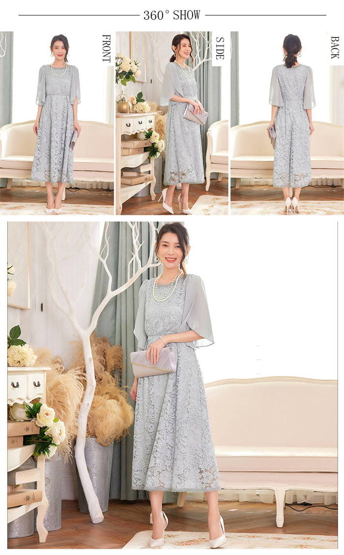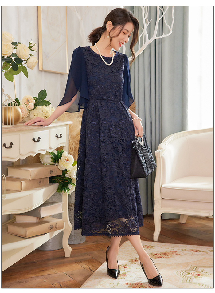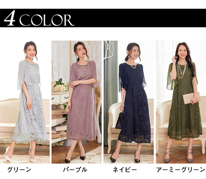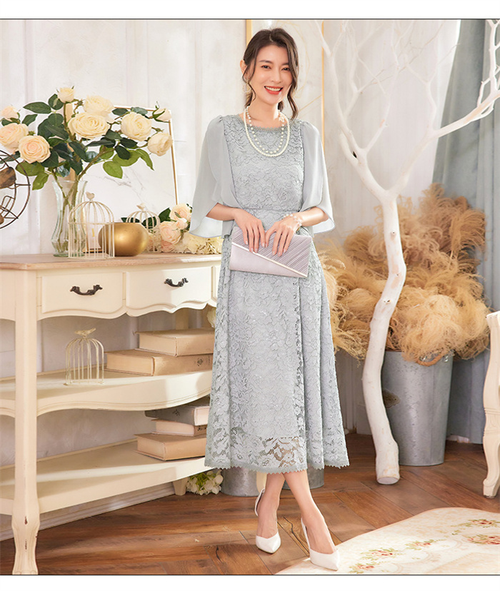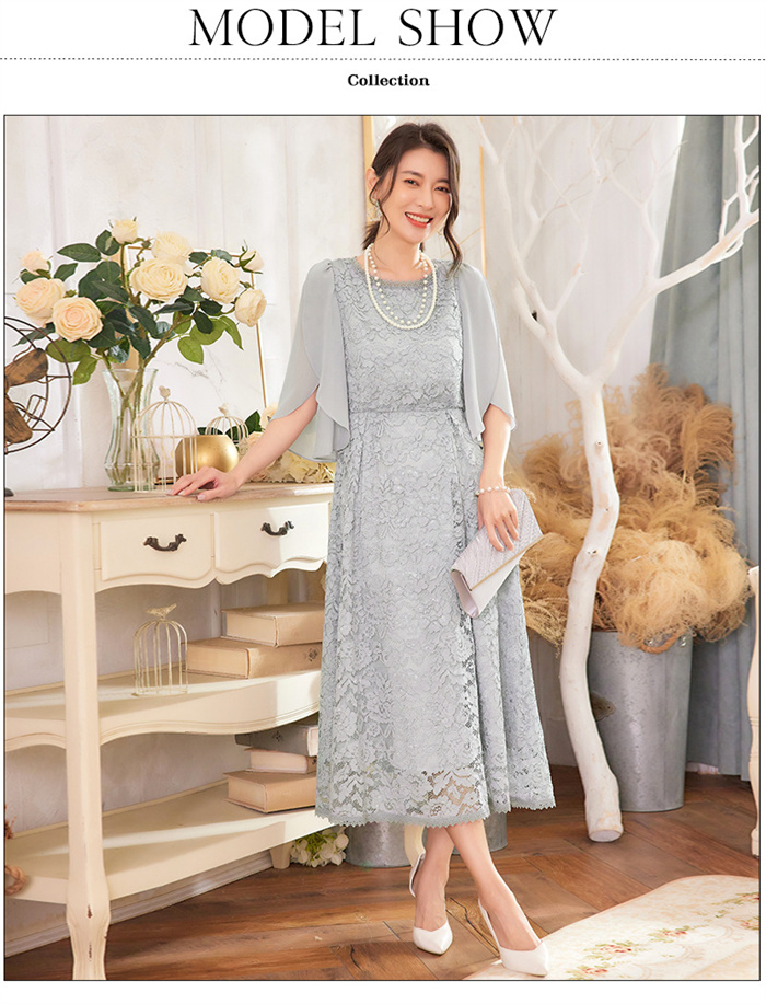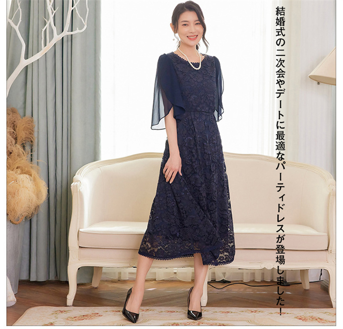 パーティードレス レース ミモレ丈 フ