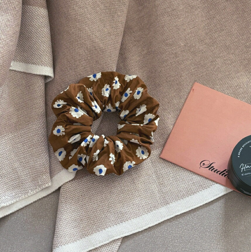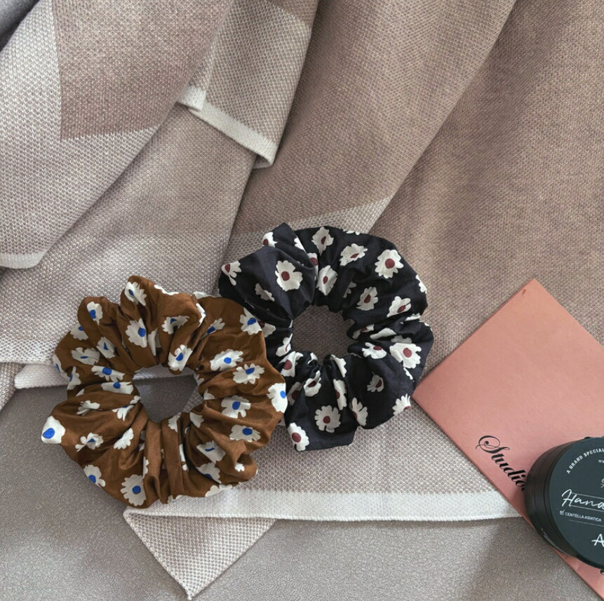 フラワーシュシュ ヘアゴム 花柄 ボリ