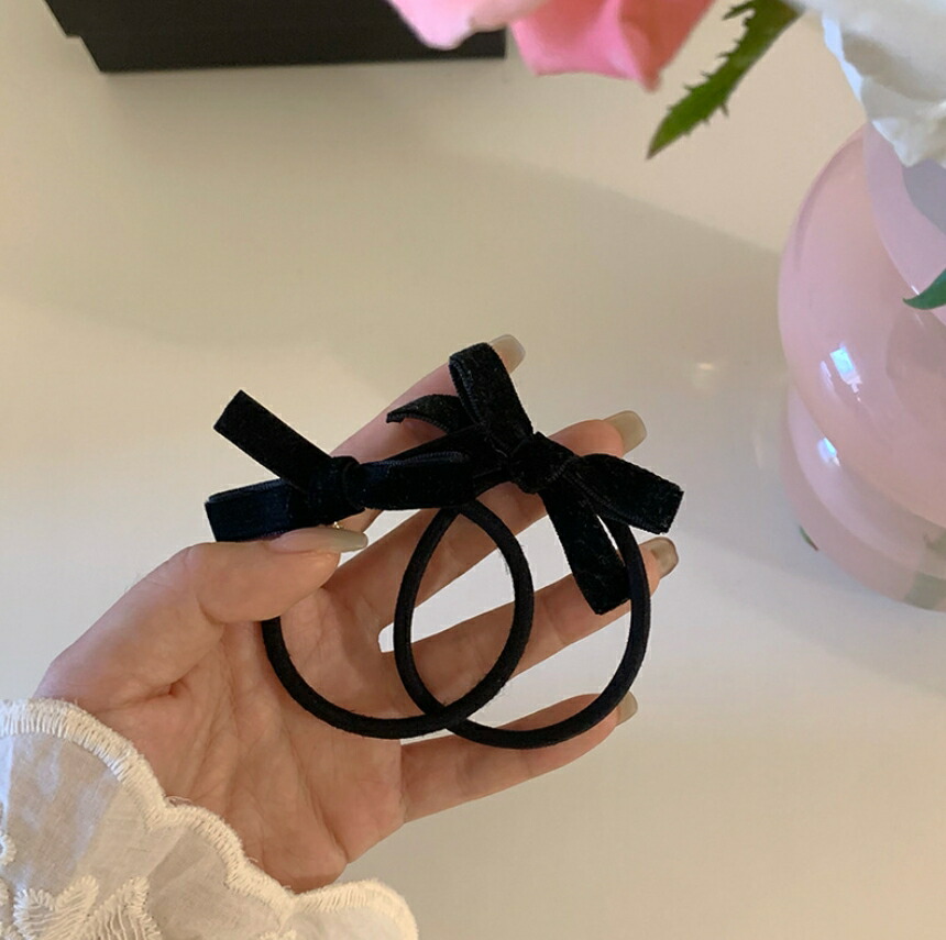 ベルベットリボンヘアゴム2点セット ベロアリボンヘアゴム ブラック 秋冬 おしゃれ 大人可愛い レディースヘアアクセサリー