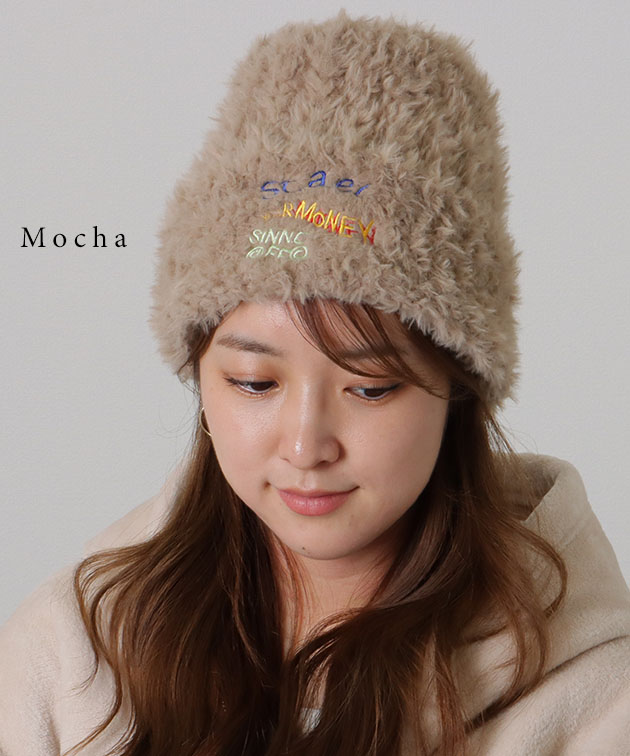 カラフル刺繍 ファー ニット ワッチ