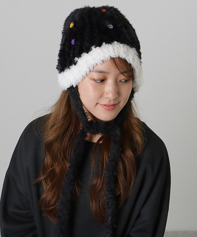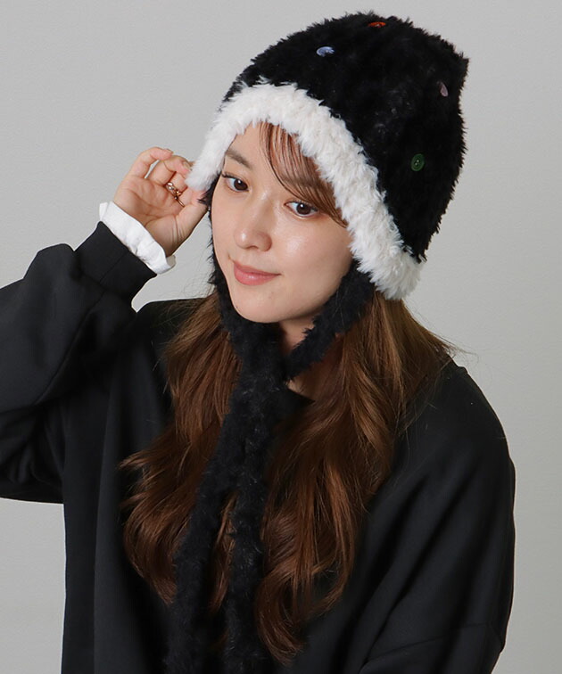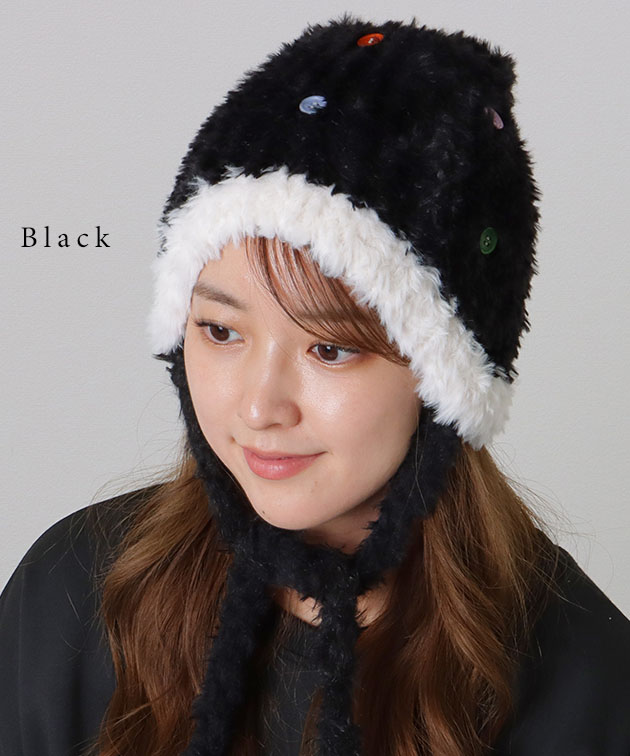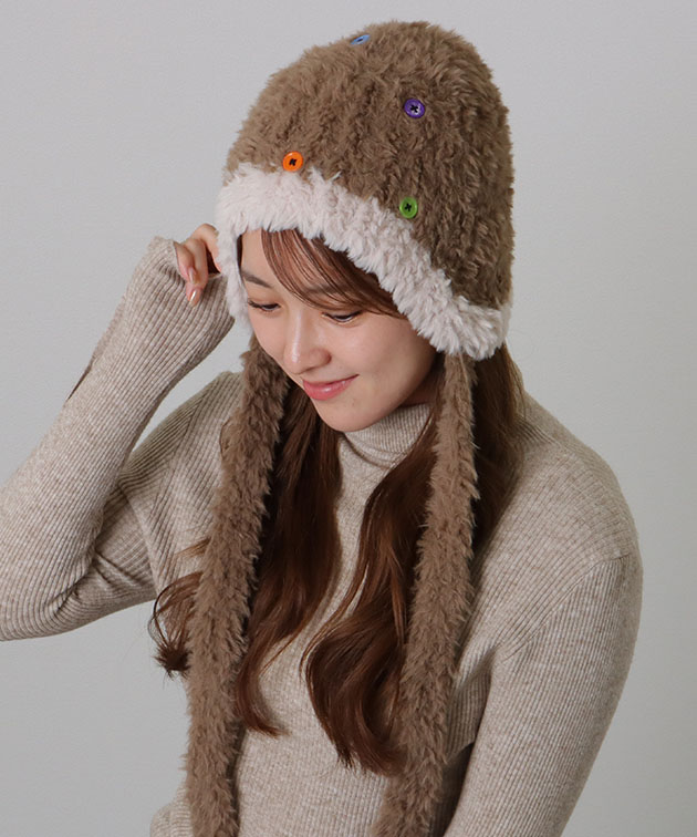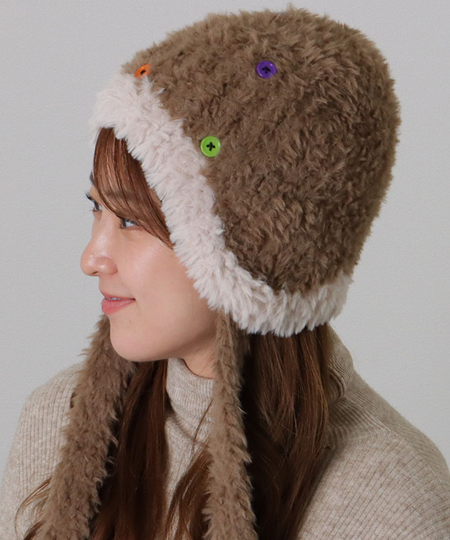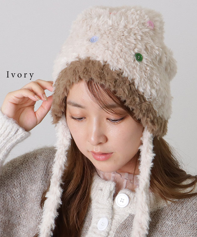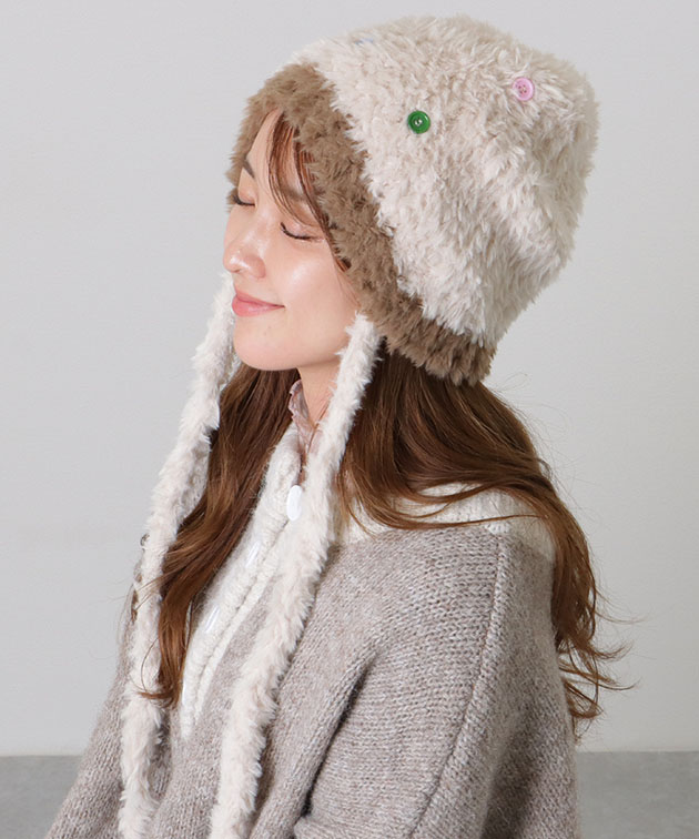 カラフル ボタン 配色 ファー ニット