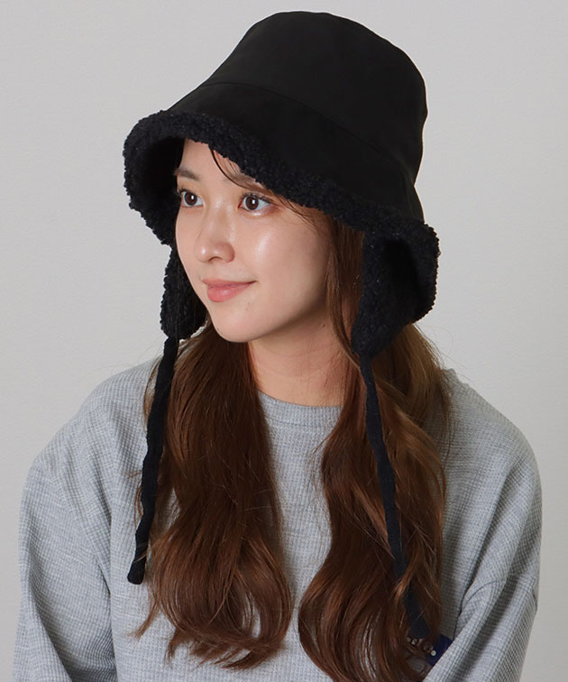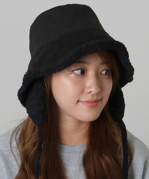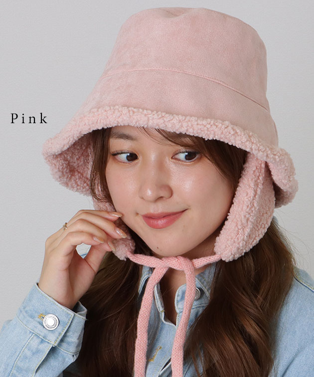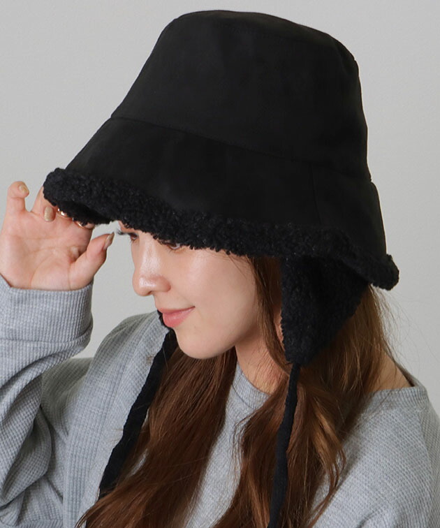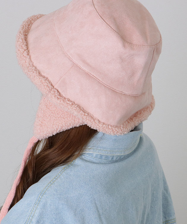 スエード調 裏ボア 耳付き バケット